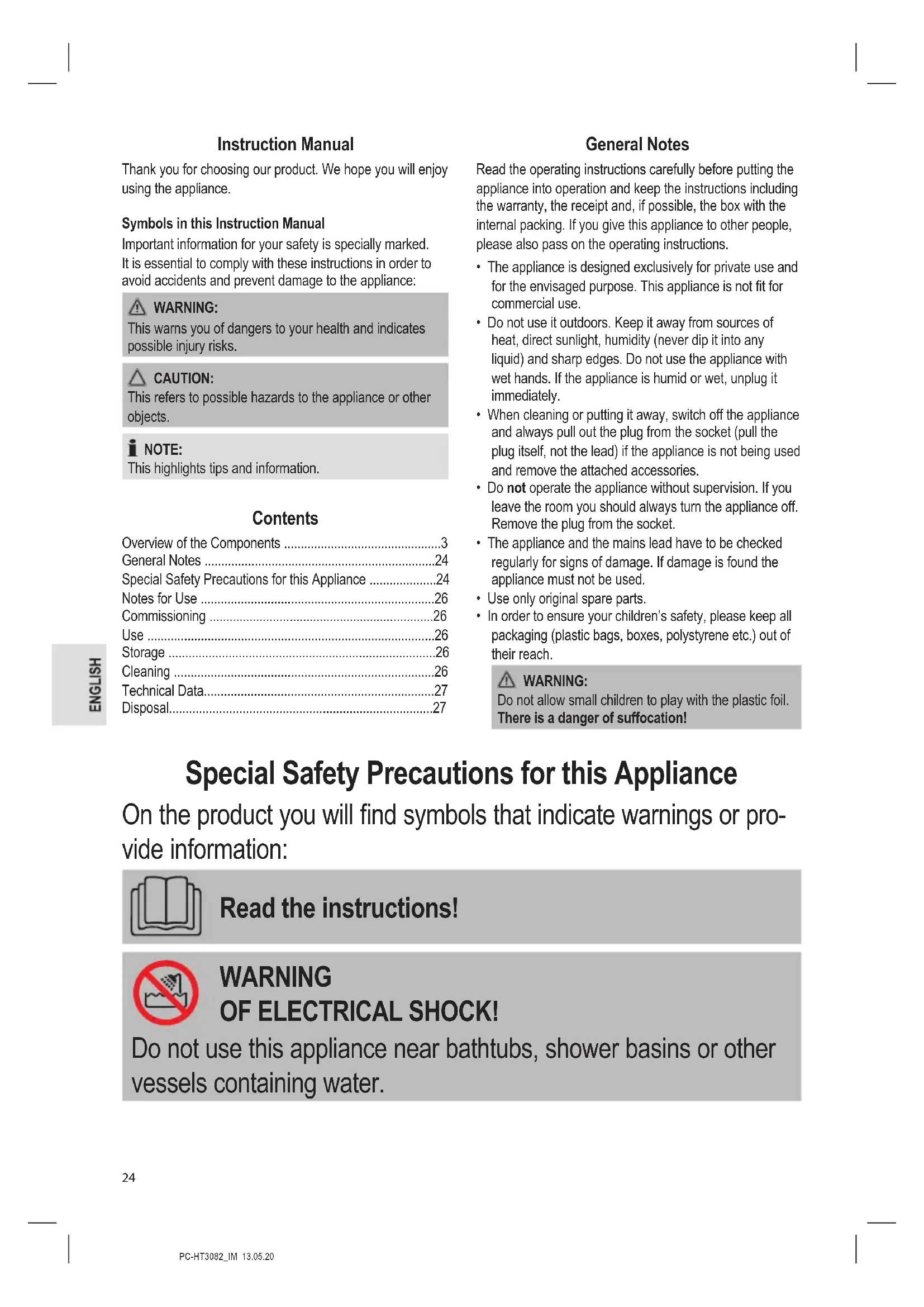 Download the instructions for your Tumble drier in PDF format for free! Find your manual PCHT 3082 - ProfiCare and take your electronic device back in hand. On this page are published all the documents necessary for the use of your device. PCHT 3082 by ProfiCare.