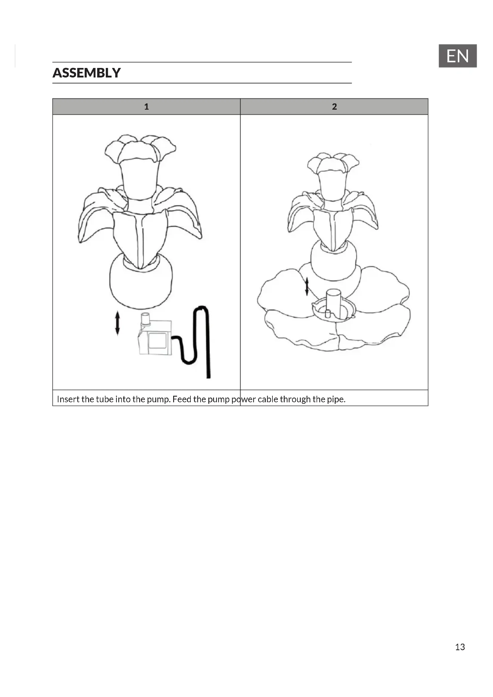 - This device is a garden fountain for outdoor use. In order for the pump to work, it must be connected to the power supply.12