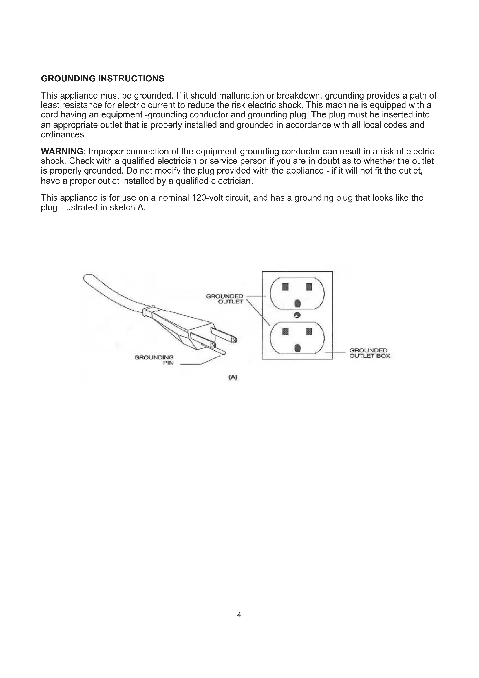 - For grounded models, connect to a properly grounded outlet only. See Grounding Instruc- tions.