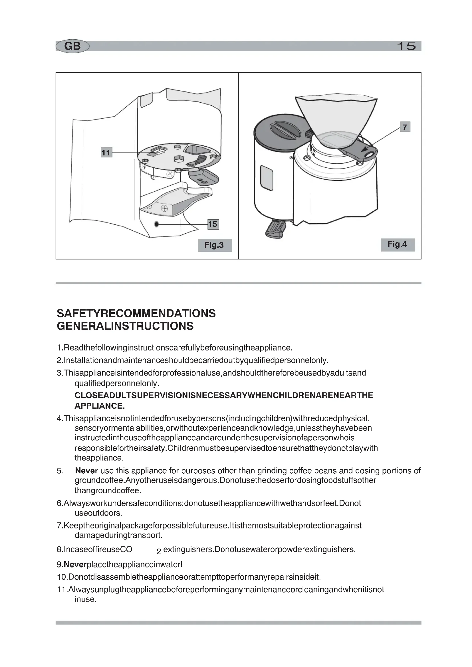 2.Installationandmaintenancesshouldbecarriedoutbyqualifiedpersonnelonly. - This appliance is intended for professional use, and should therefore be used by adults and qualified personnel only.
