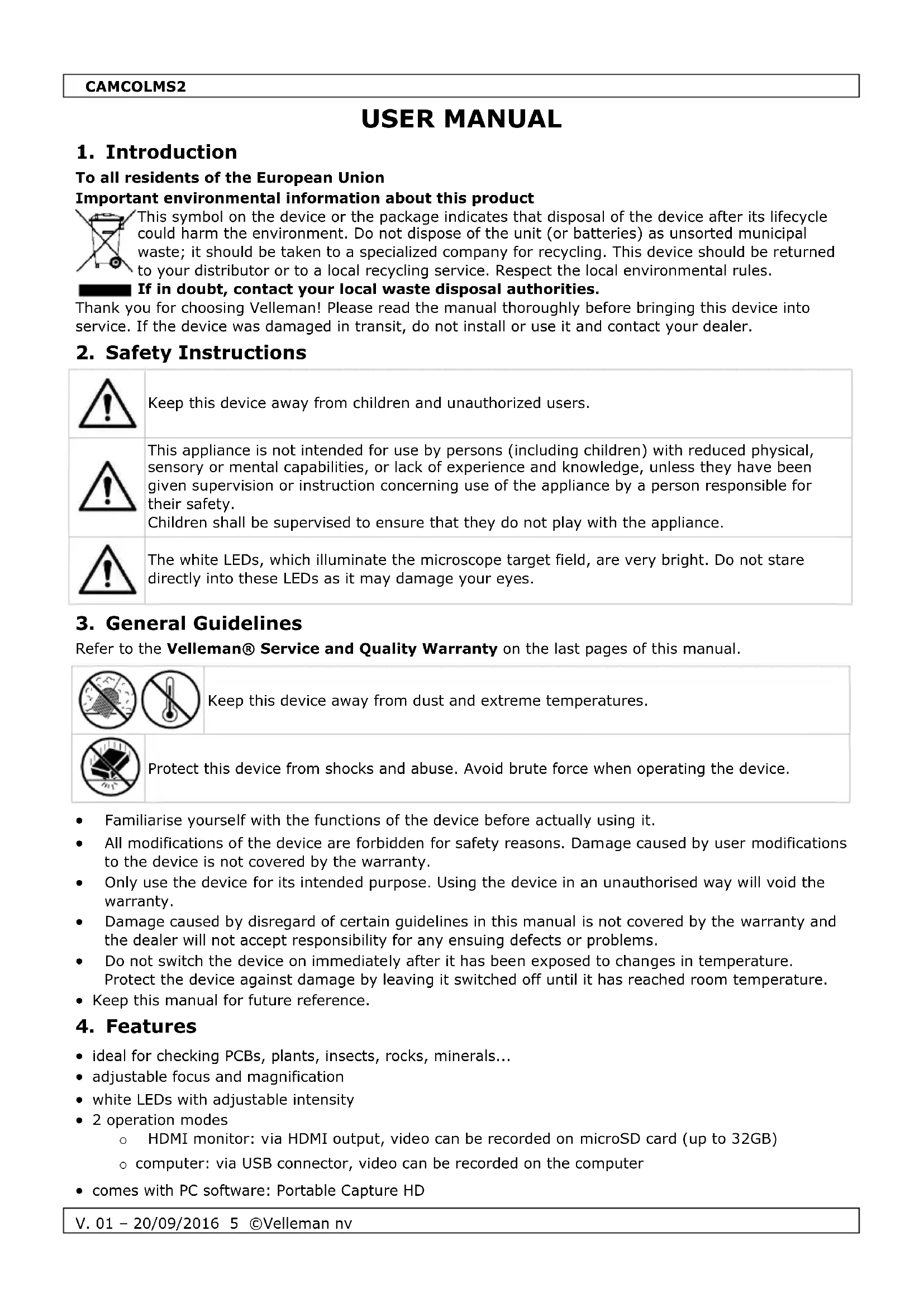 V. 01 – 20/09/2016 10 ©Velleman nv