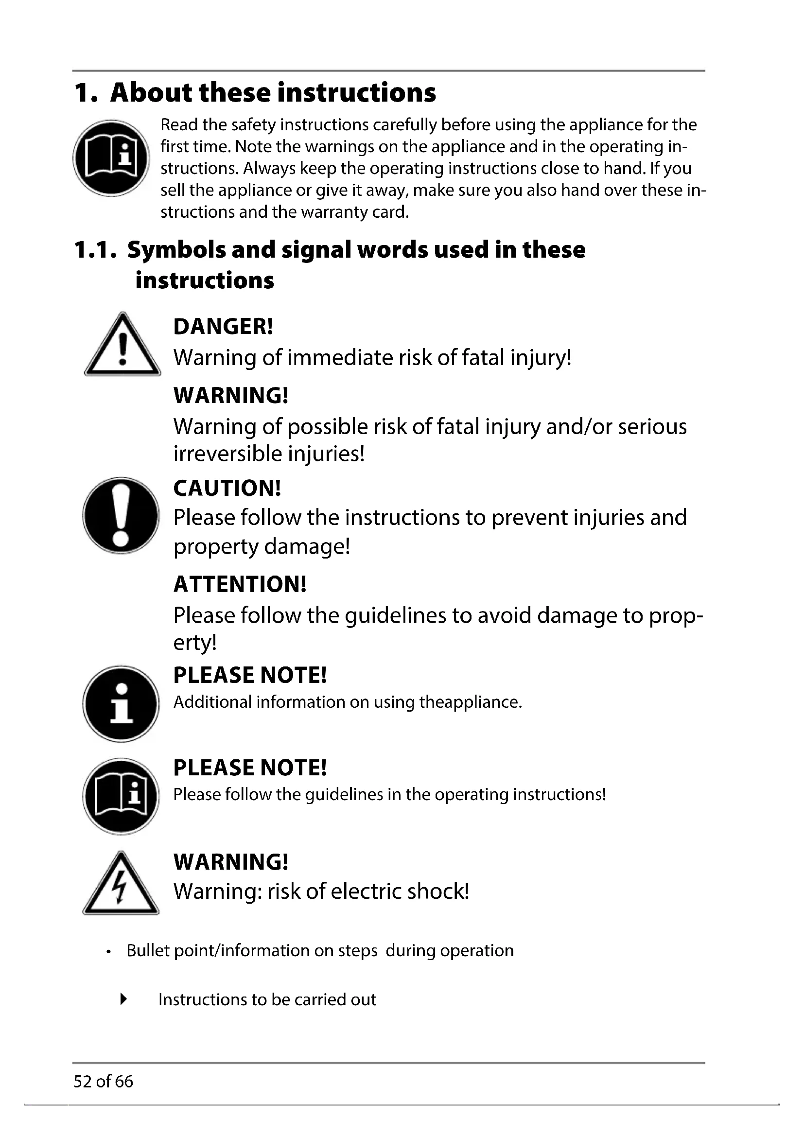 1.1. Symbols and signal words used in these instructions ....52