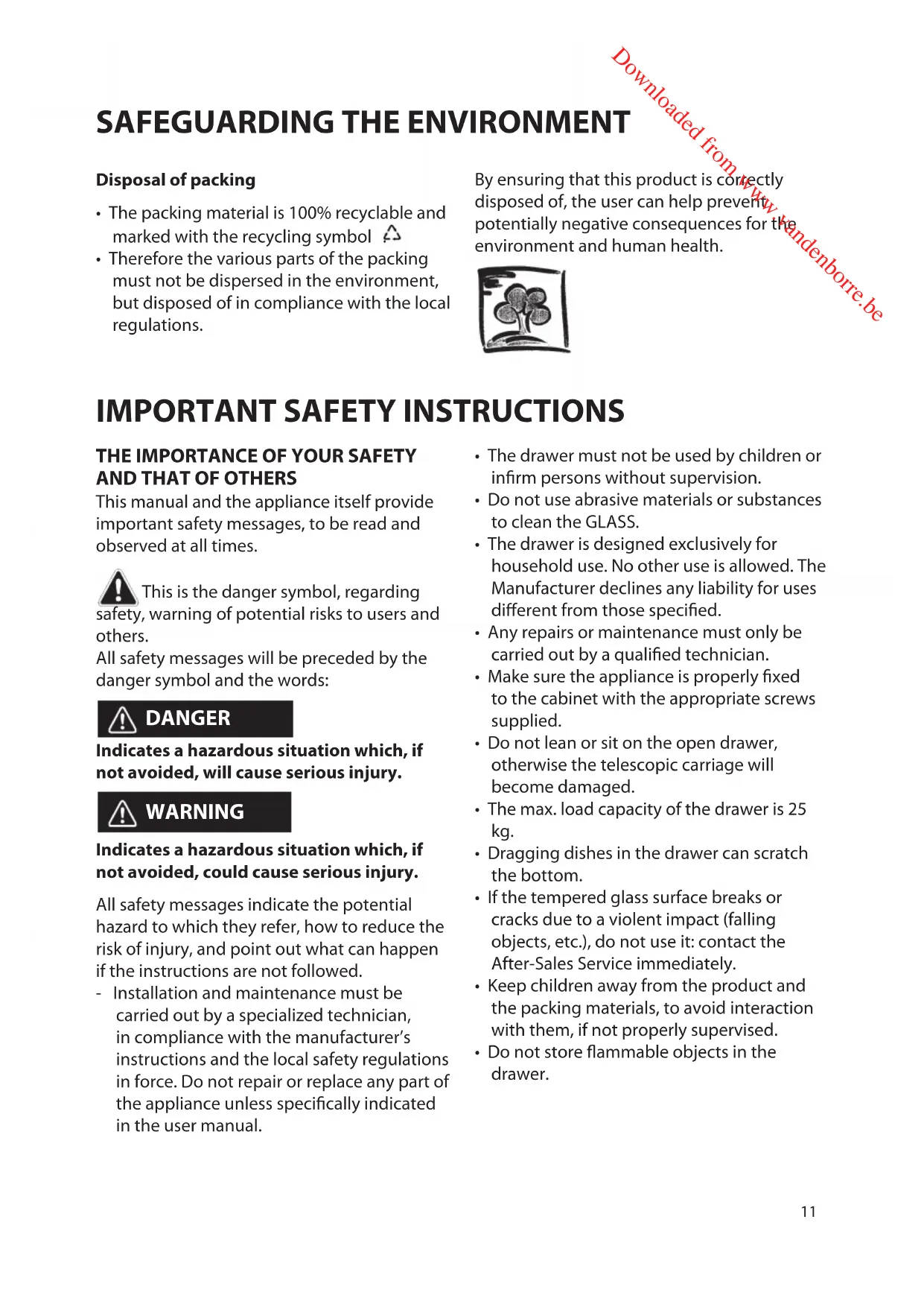 - This drawer is intended to come into contact with foodstus and complies with Regulation (EC) no. 1935/2004. Downloaded from www.vandenborre.be16