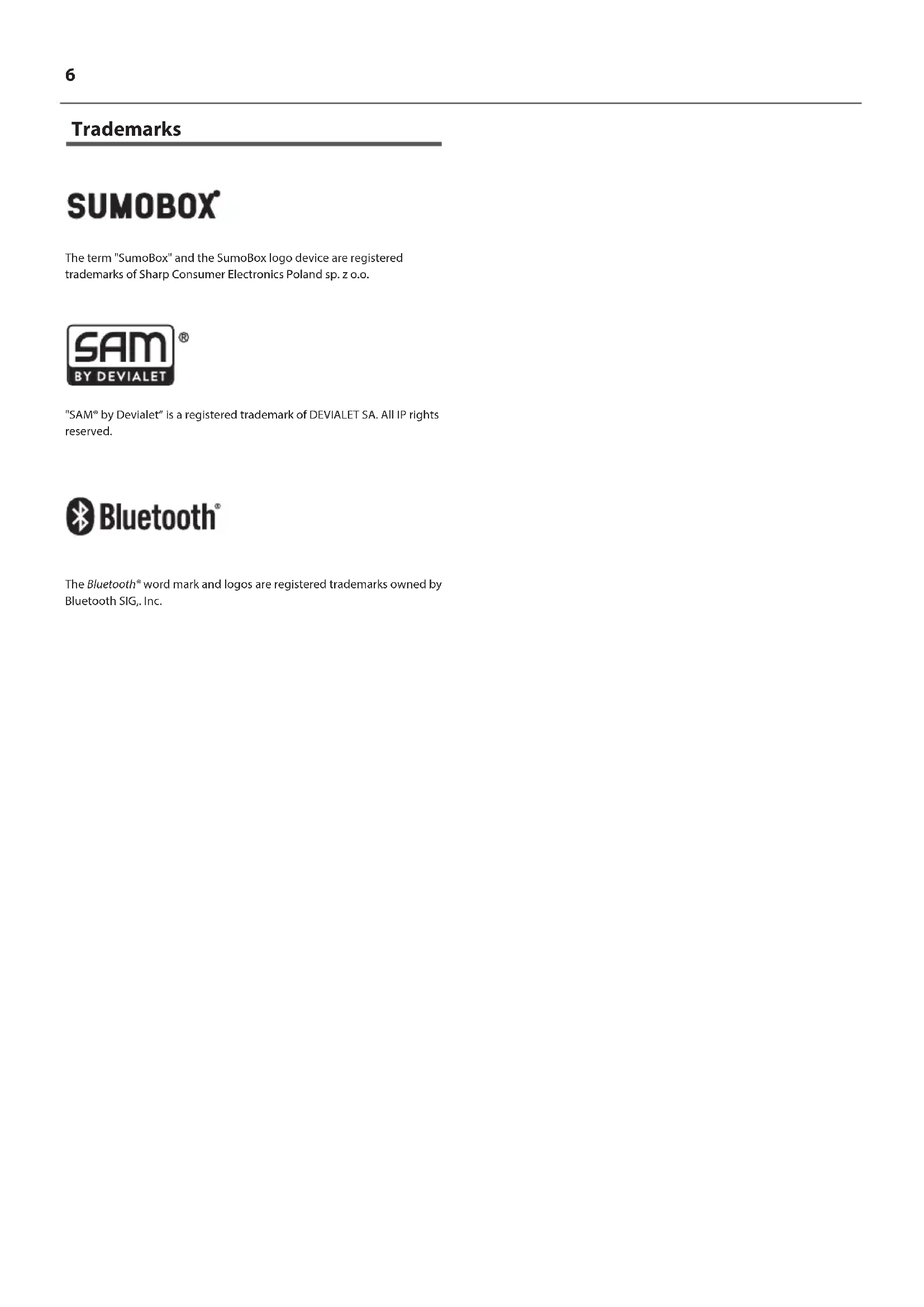 The term "SumoBox" and the SumoBox logo device are registered trademarks of Sharp Consumer Electronics Poland sp. z o.o.