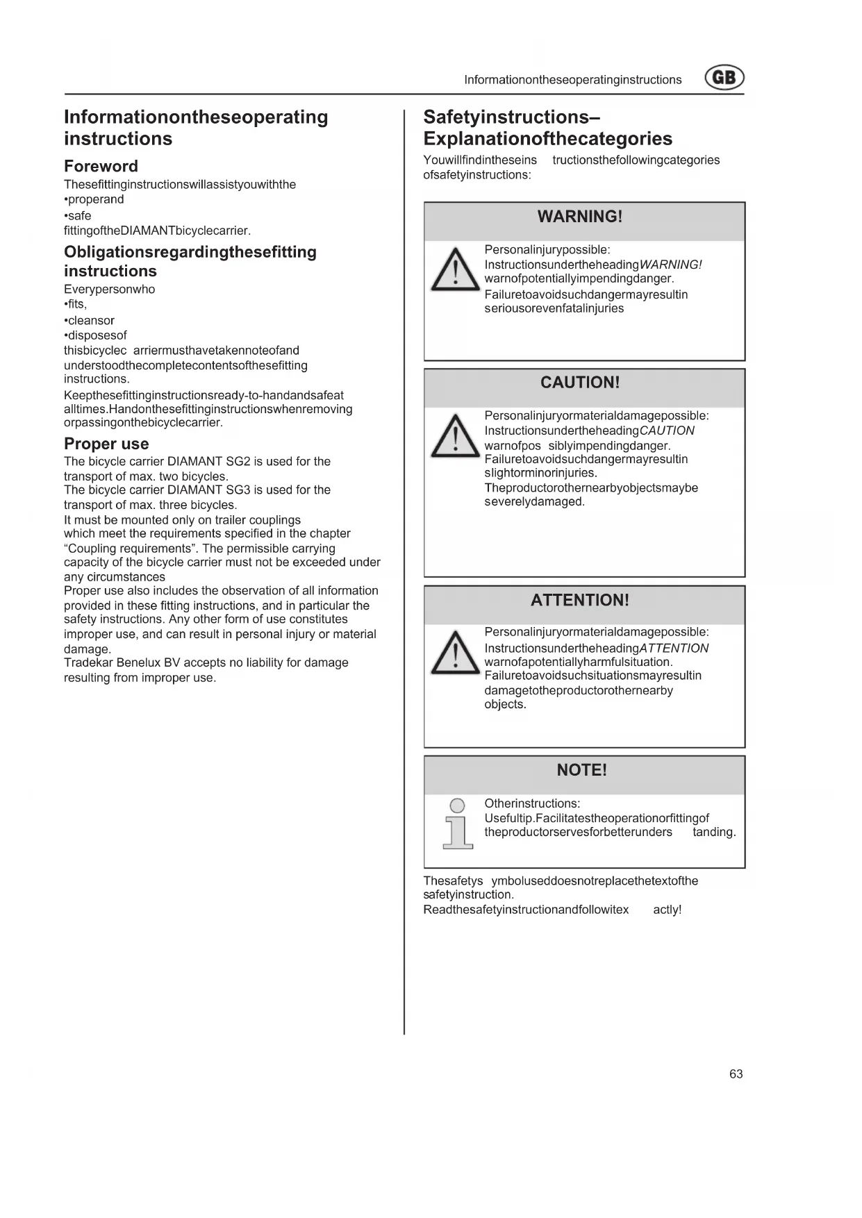 Keepthesefittinginstructionsready-to-handandsafeat alltimes.Handonthesefittinginstructionswhenremoving orpassingonthebicyclecarrier.