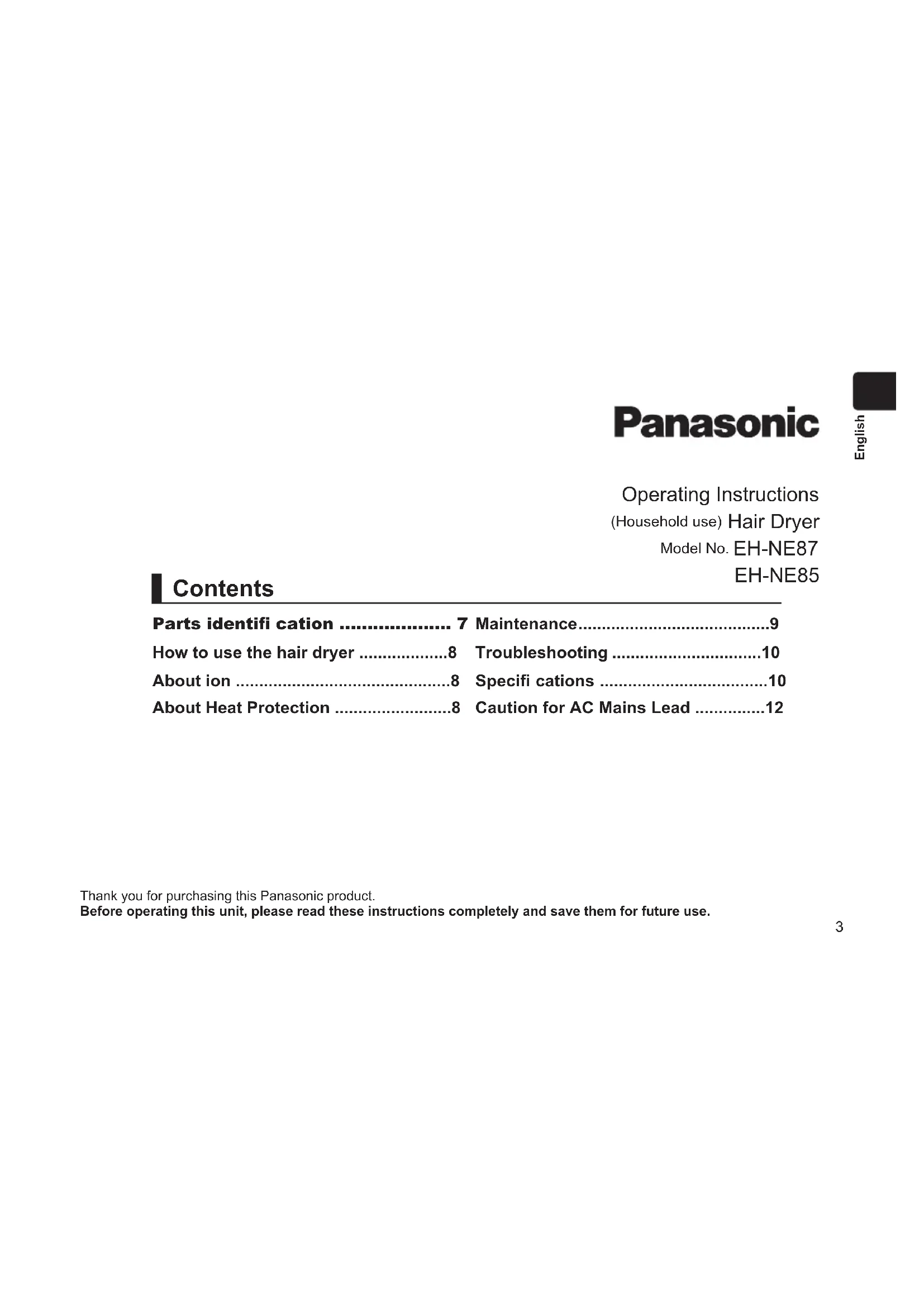 EHNE85 - Hair Dryers PANASONIC - Free user manual and instructions