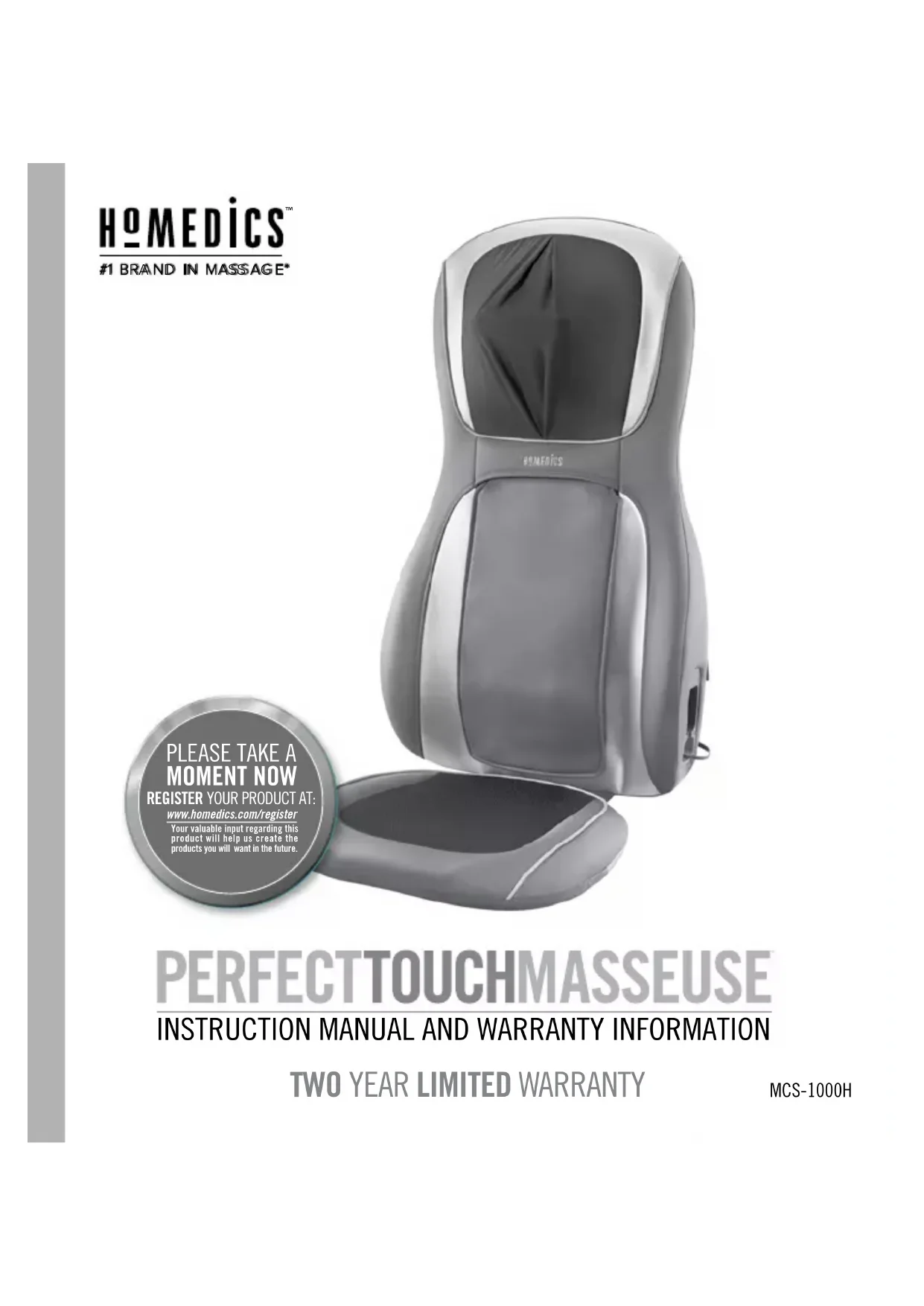 MCS-1000H www.homedics.com/registerYour valuable input regarding this product will help us create the products you will want in the future.
