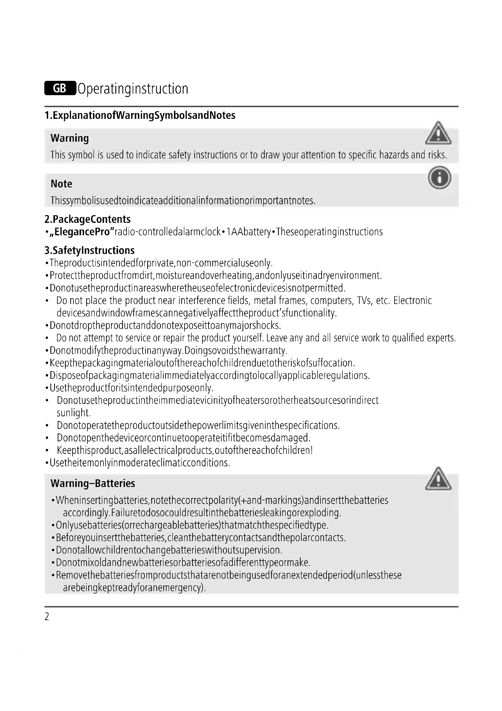 - Use the item only in moderate climatic conditions. Warning – Batteries