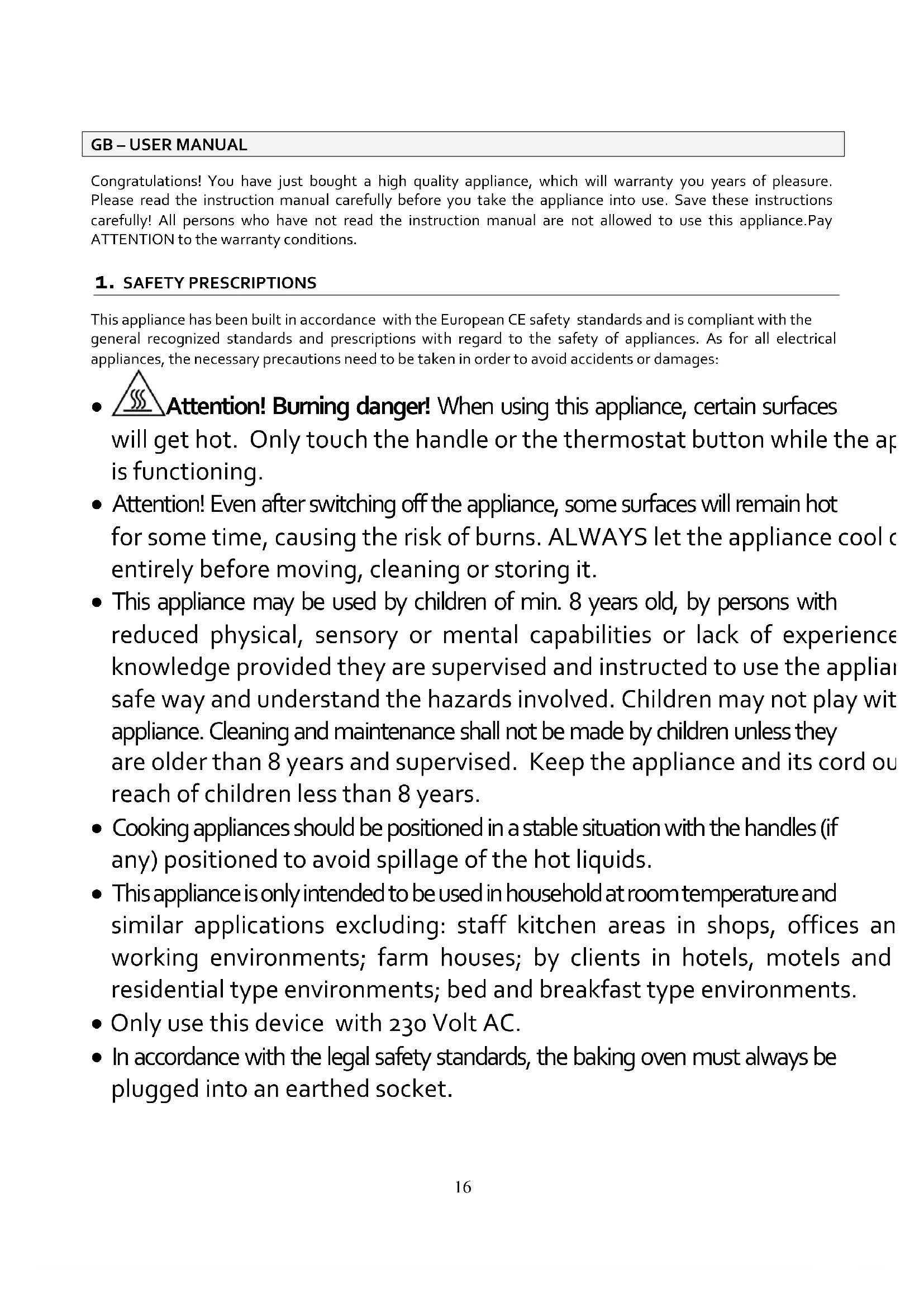 Congratulations! You have just bought a high quality appliance, which will warranty you years of pleasure. Please read the instruction manual carefully before you take the appliance into use. Save these instructions carefully! All persons who have not read the instruction manual are not allowed to use this appliance.Pay ATTENTION to the warranty conditions.