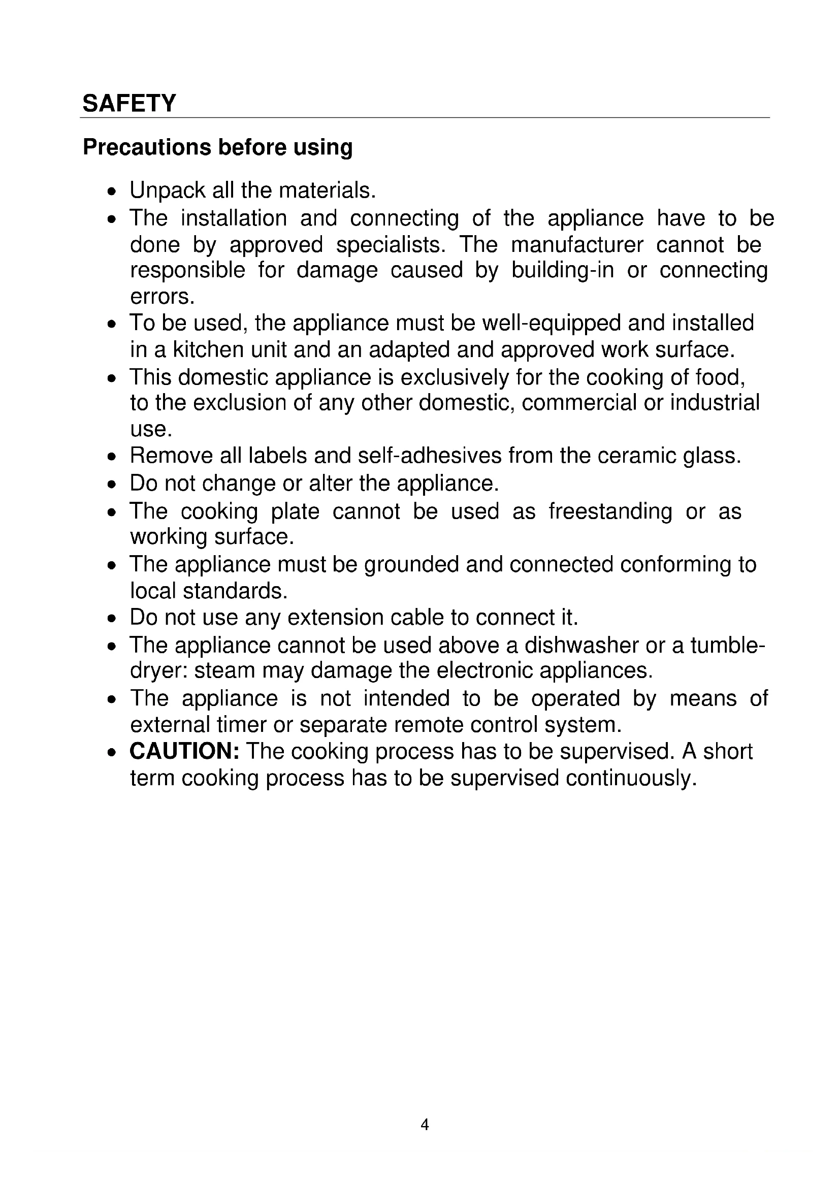 - CAUTION: The cooking process has to be supervised. A short term cooking process has to be supervised continuously