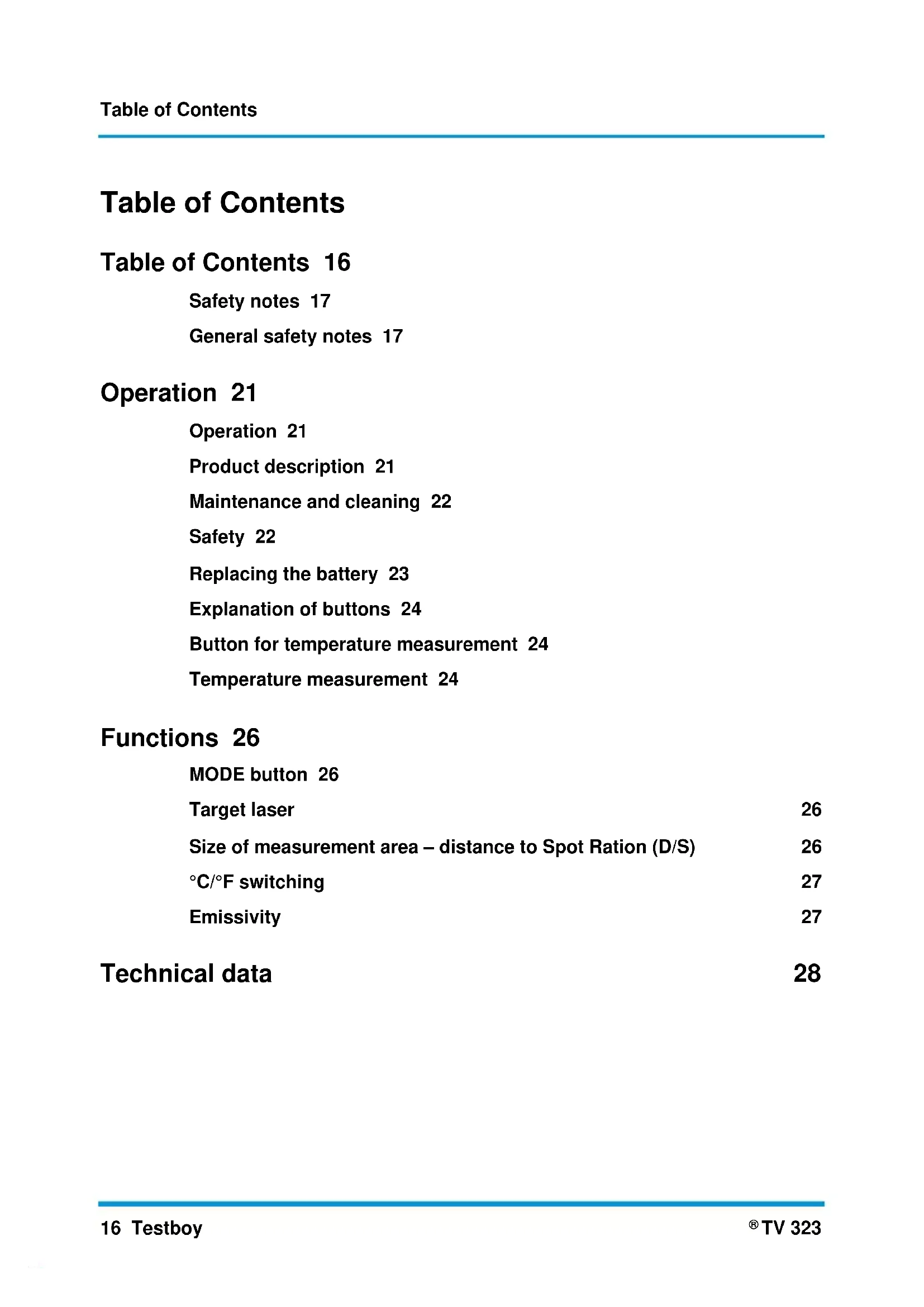 TV 323 - Thermometer Testboy - Free user manual and instructions