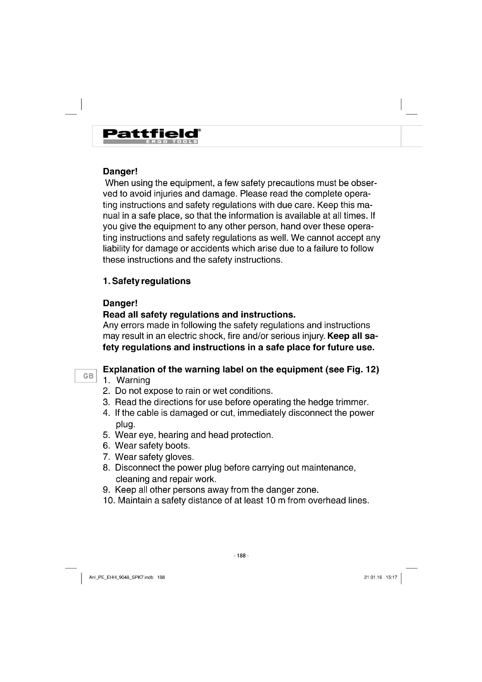 PEEHH 9048 - Hedge trimmers Pattfield - Free user manual and instructions