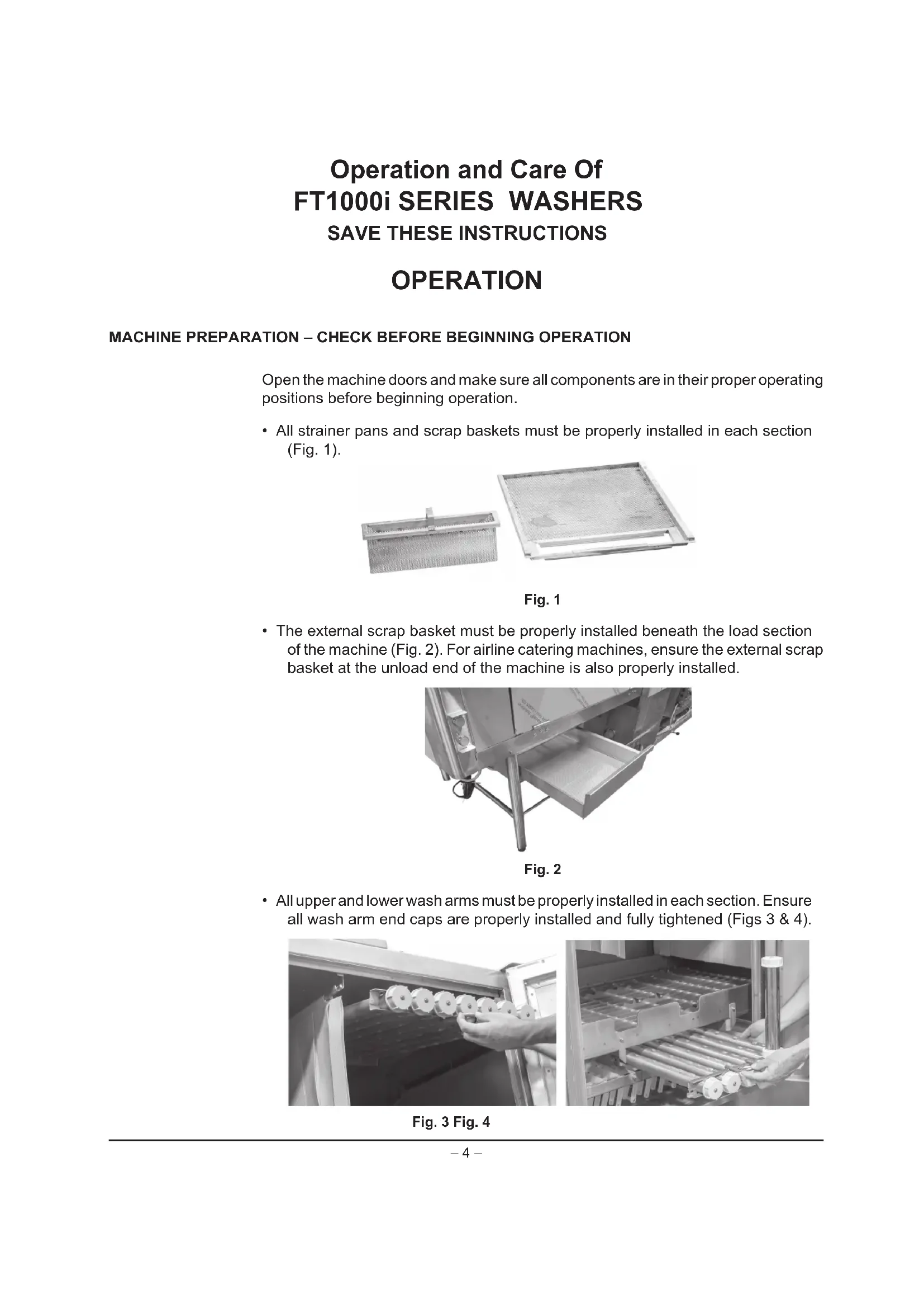 - All strainer pans and scrap baskets must be properly installed in each section (Fig. 1).