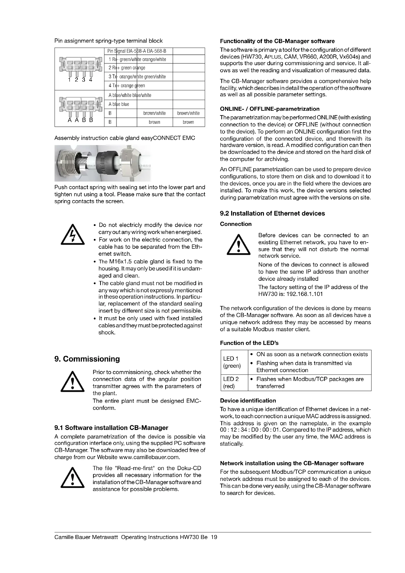 The network installation of the devices is done by means of the CB-Manager software. As soon as all devices have a unique network address they may be accessed by means of a suitable Modbus master or client.