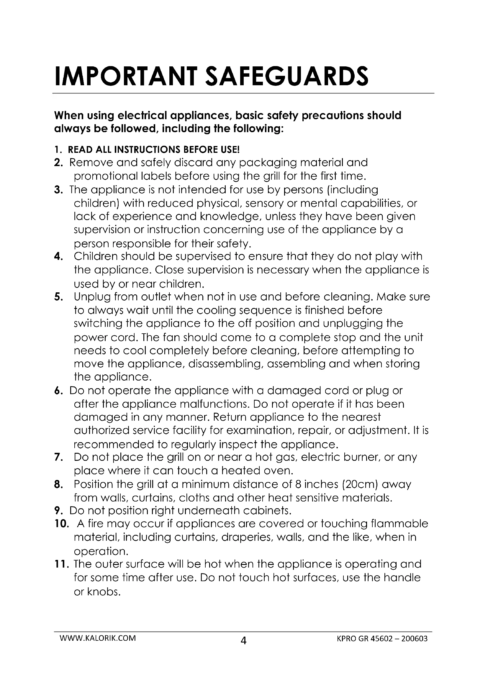 USER MANUAL Pro KPRO GR 45602 KALORIK