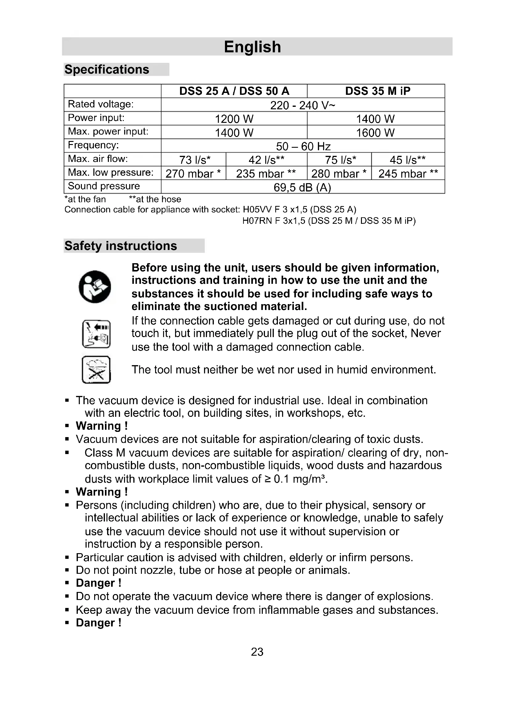 Download the instructions for your Vacuum Cleaner in PDF format for free! Find your manual DSS 25 A - Eibenstock and take your electronic device back in hand. On this page are published all the documents necessary for the use of your device. DSS 25 A by Eibenstock.