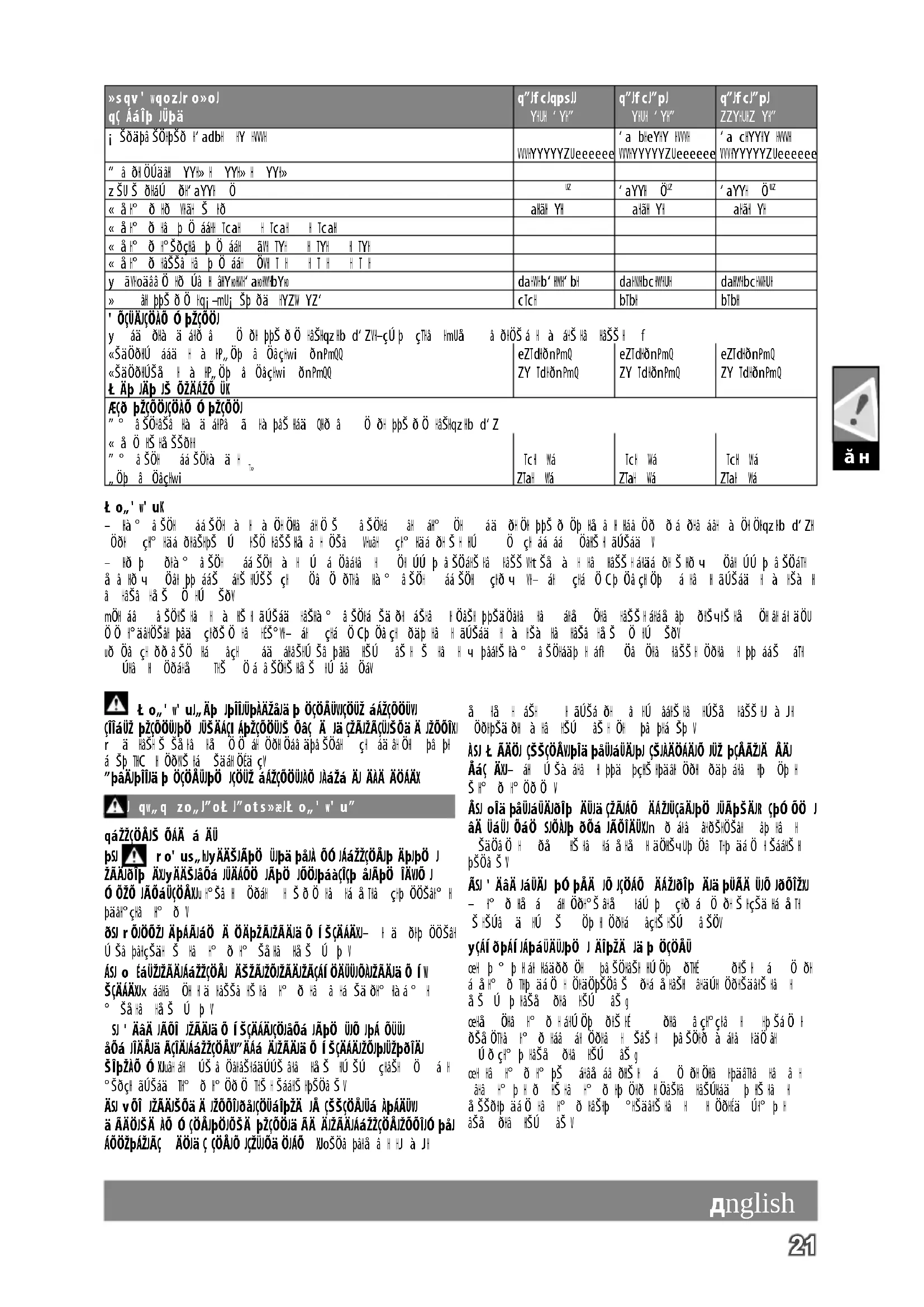 English Only plug-in when machine is switched o. Keep mains lead clear from working range of the machine. Always lead the cable away behind you. Before use check machine, cable, safety harness and plug for any damages or material fatigue. Repairs should only be carried out by authorised Service Agents.