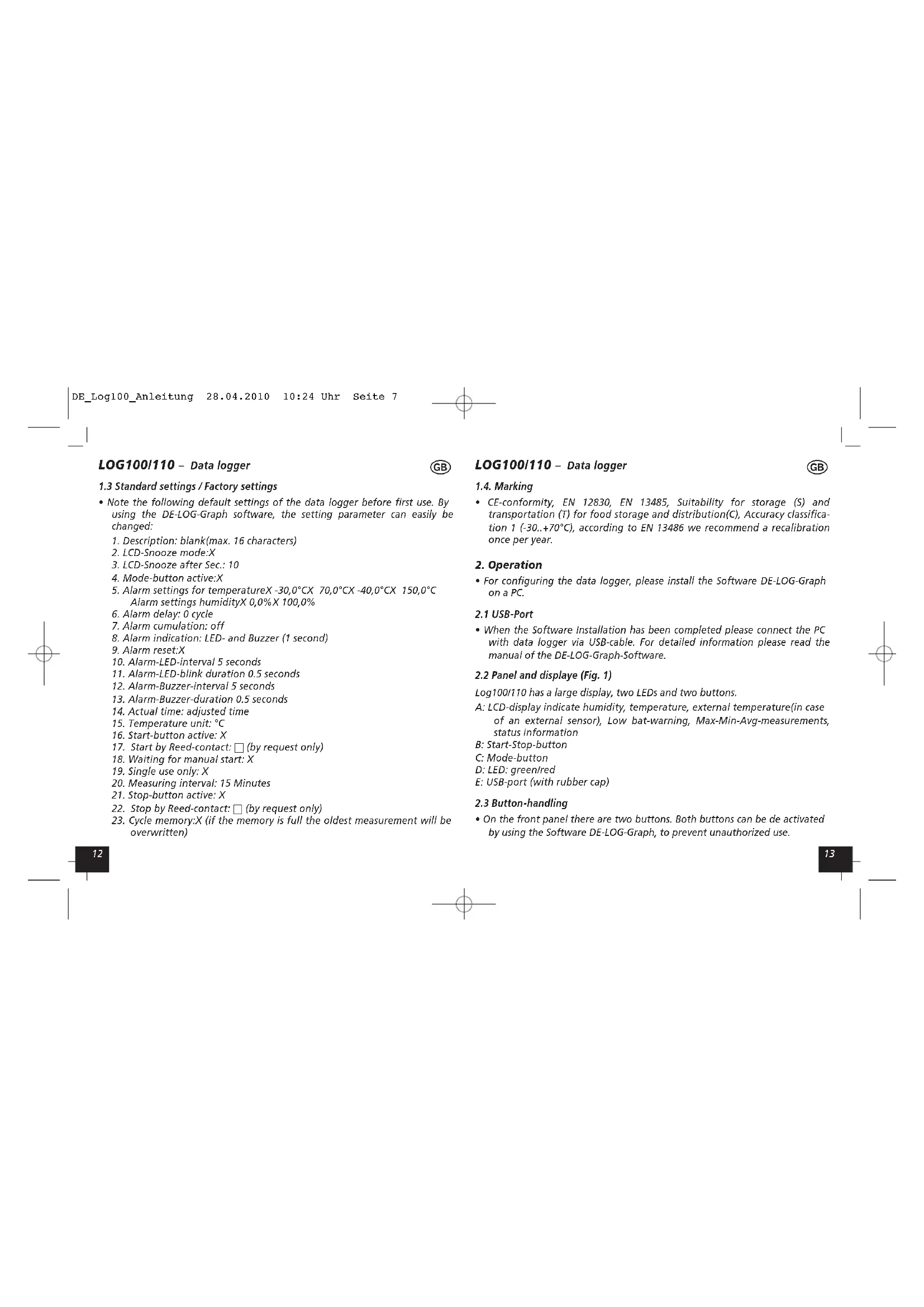 Find the device manual for free LOG110 Dostmann Electronic in PDF.