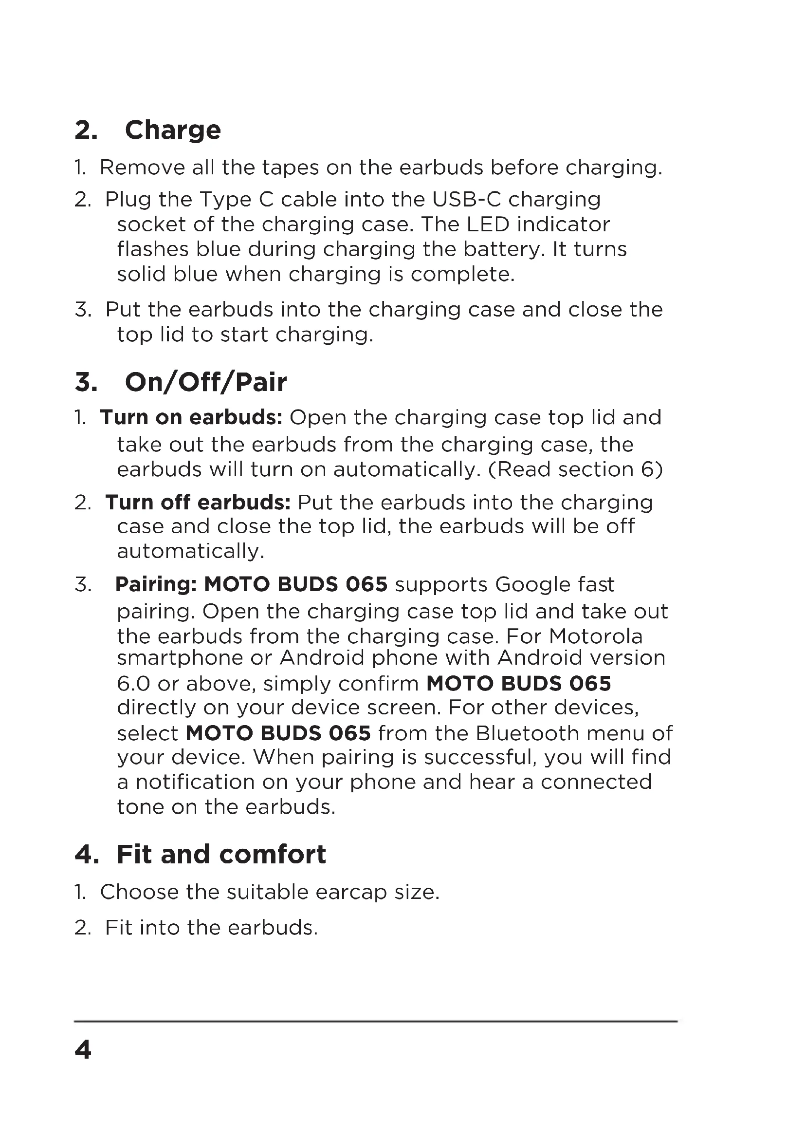 pairing. Open the charging case top lid and take out the earbuds from the charging case. For Motorola smartphone or Android phone with Android version