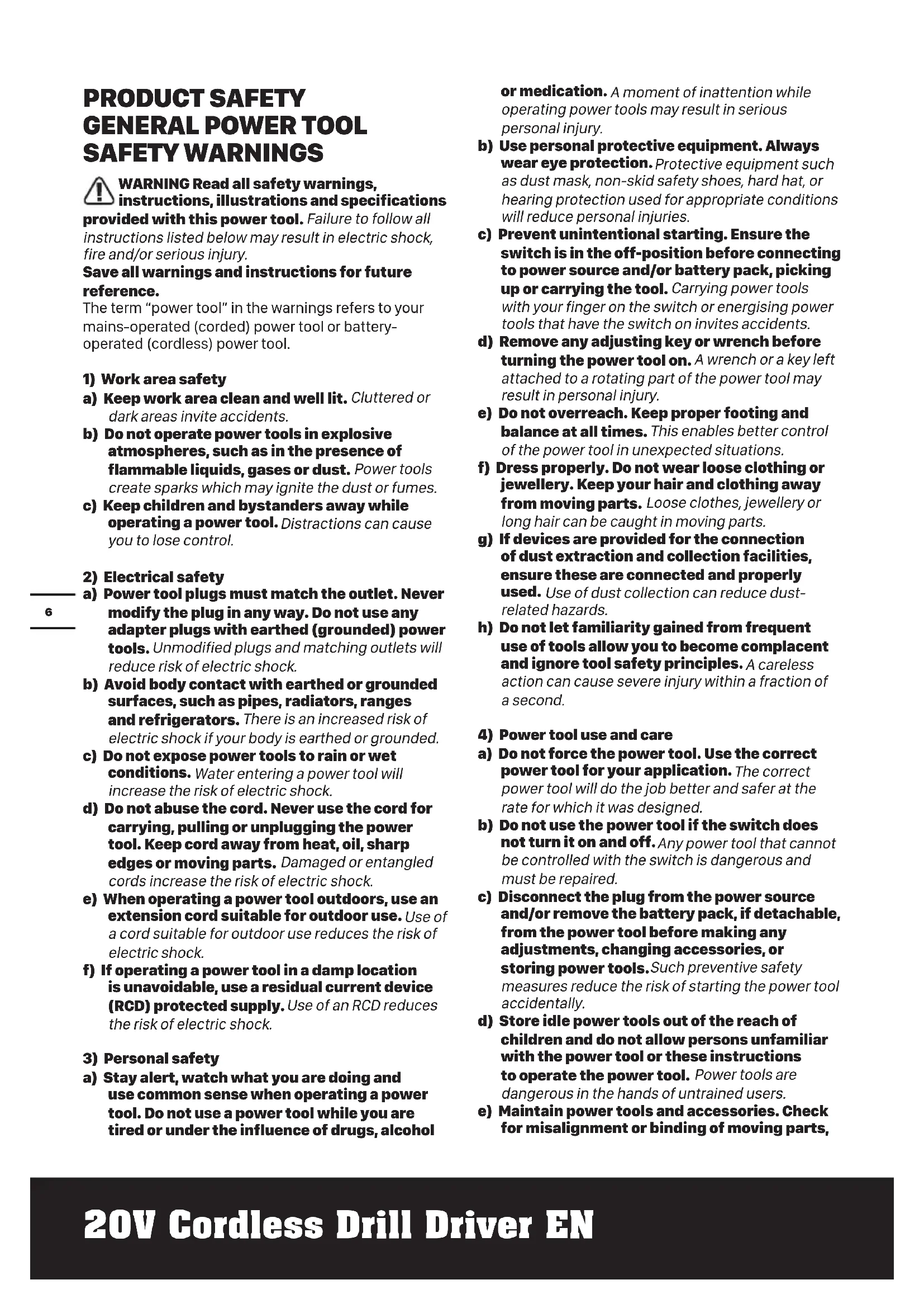 20V Cordless Drill Driver EN PRODUCT SAFETY