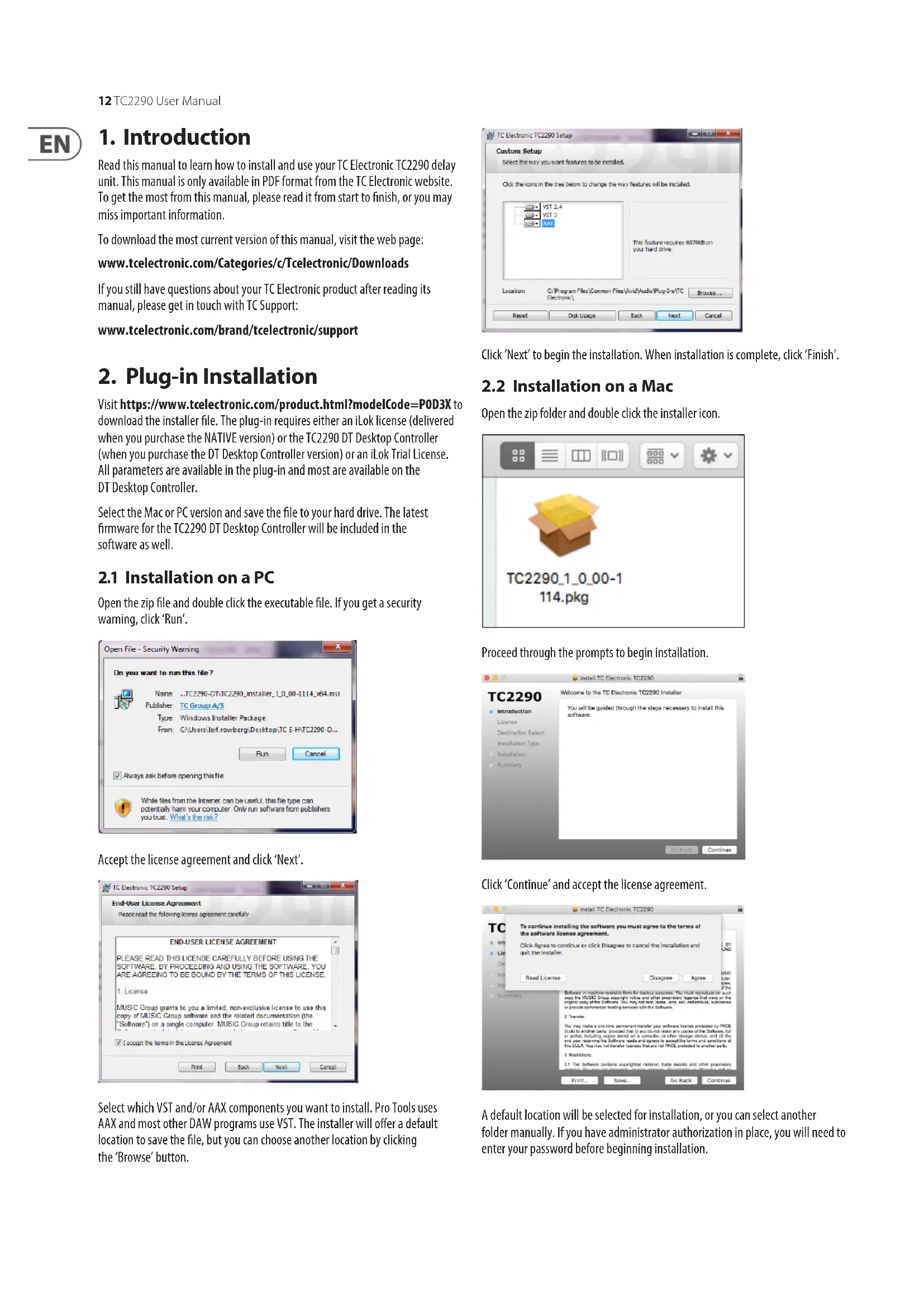 Besök www.tcelectronic.com/tc2290-dt/support/ für att ladda ner installationsfilen. Insticksprogrammet kraver antingen en iLok-licens (levereras när du köper NATIVE-versionen) aller TC2290 DT Desktop Controller (när du köper DT Desktop Controller-versionen) aller en iLok-provlicens. Alla parametrar ar tillgangliga i plug-in och de fleta ar tillgangliga på DT Desktop Controller.