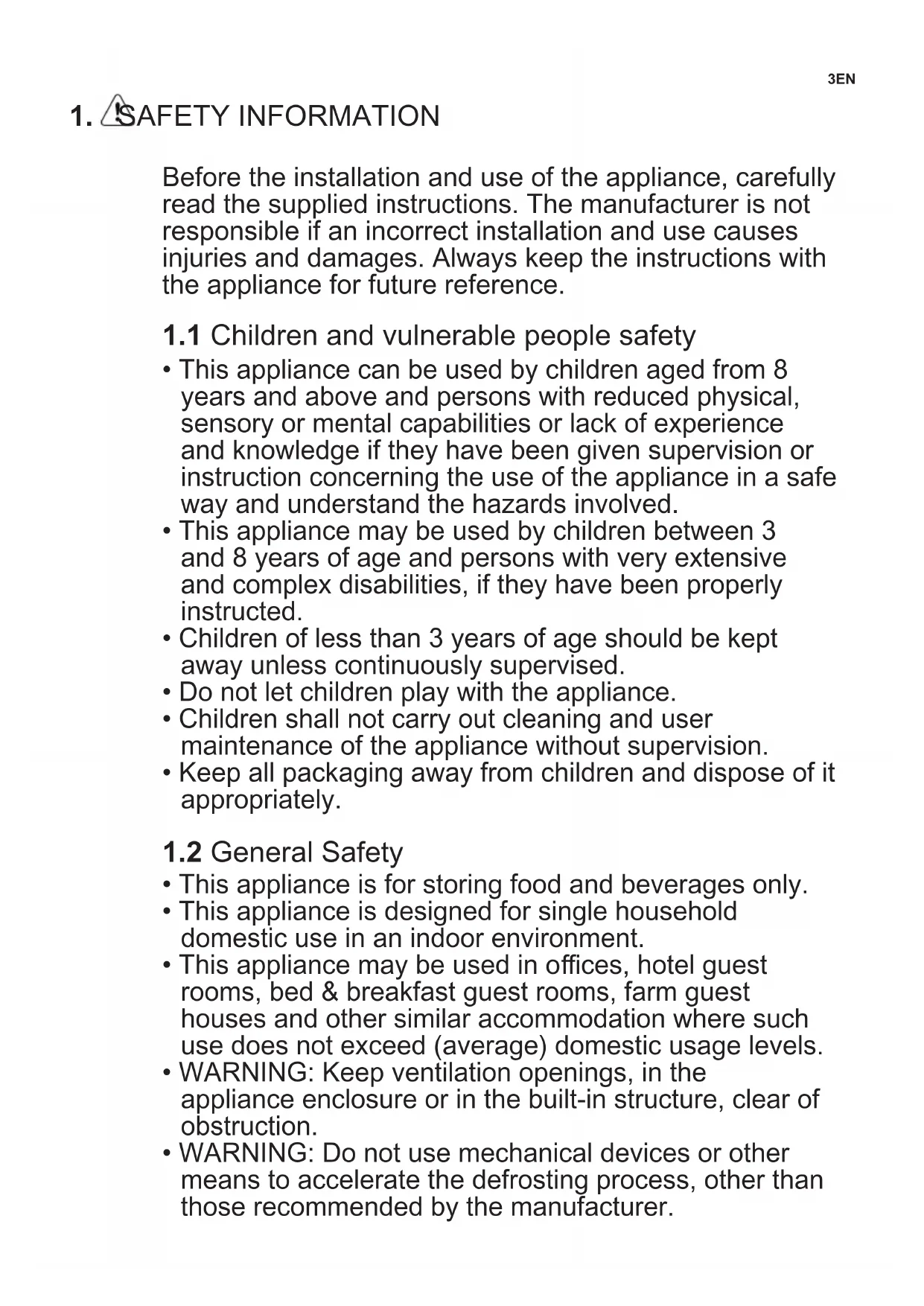 - This appliance may be used by children between 3 and 8 years of age and persons with very extensive and complex disabilities, if they have been properly instructed.