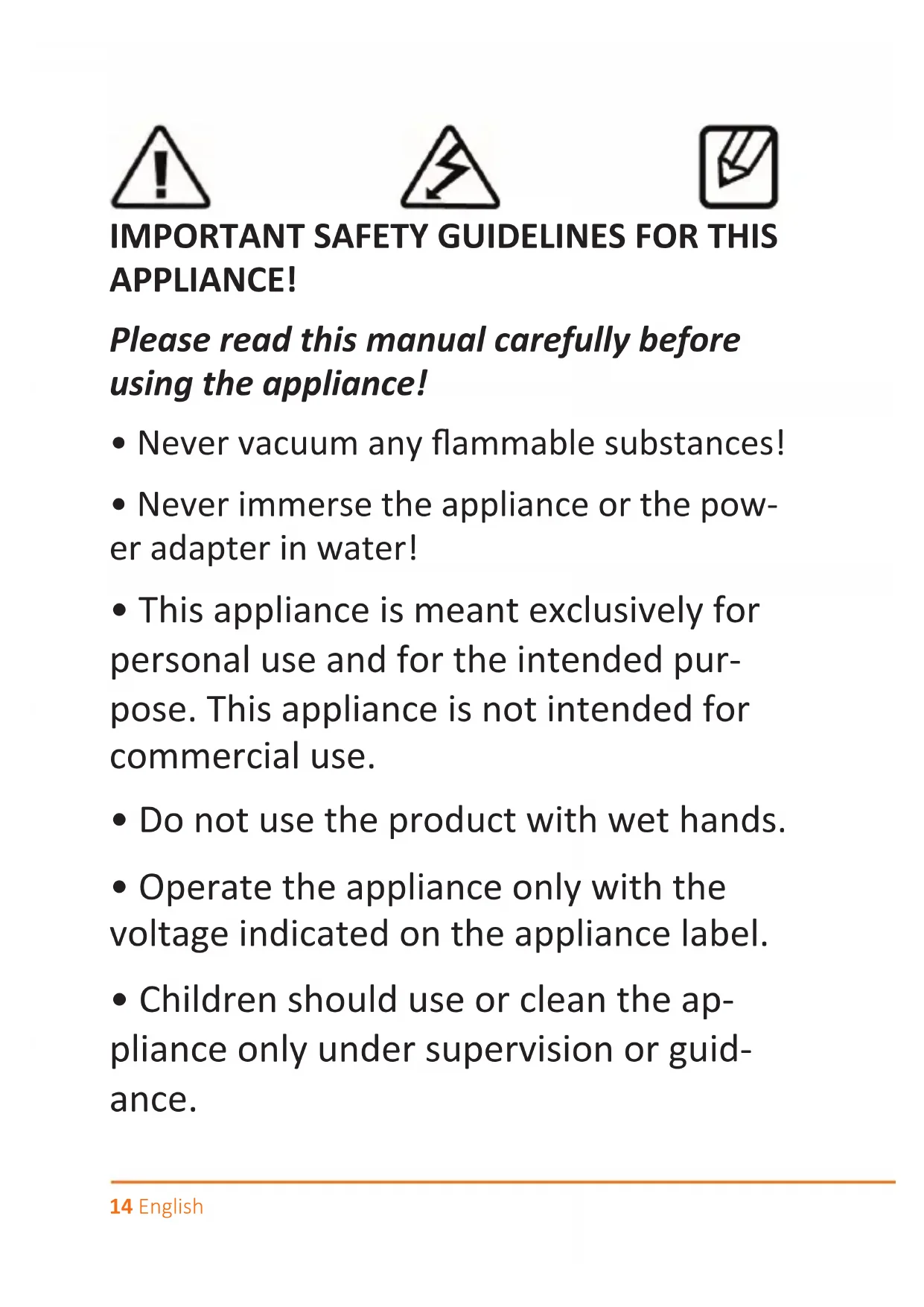 - Operate the appliance only with the voltage indicated on the appliance label.