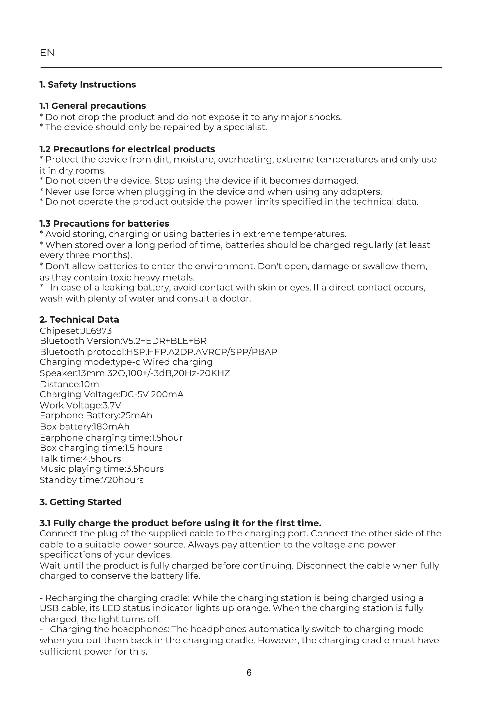 3.1 Fully charge the product before using it for the first time.