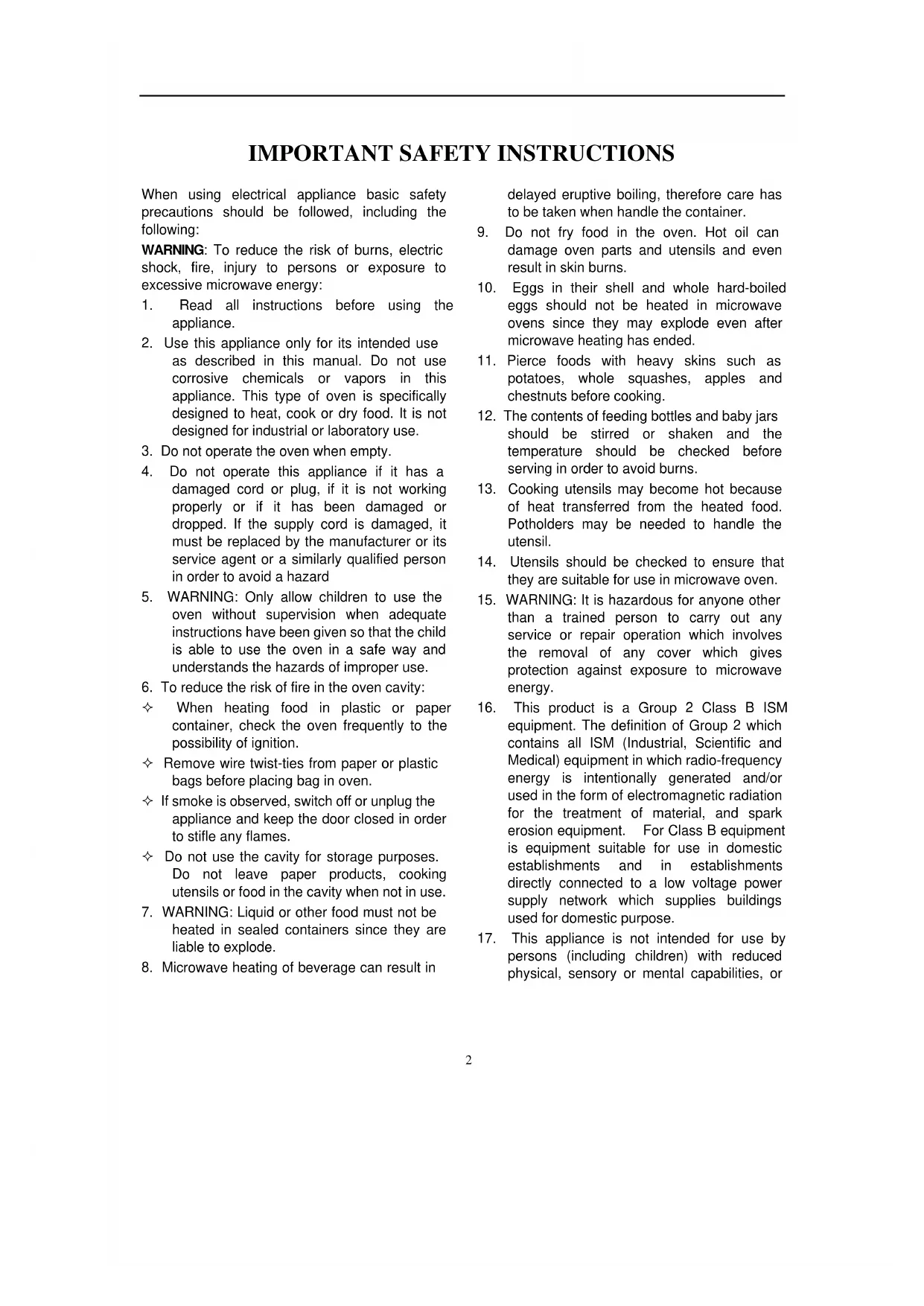 7. WARNING: Liquid or other food must not be