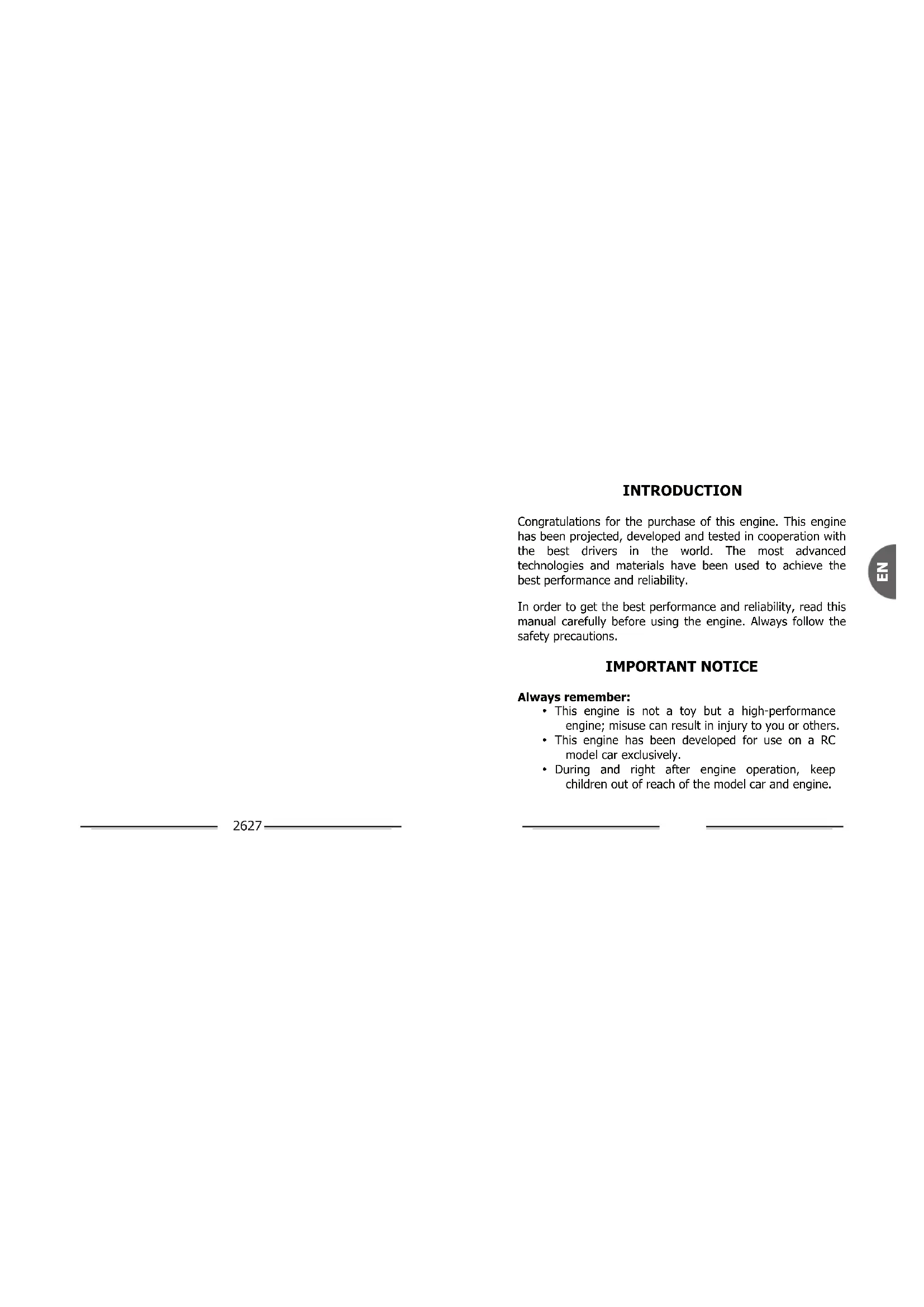 - This engine is not a toy but a high-performance engine; misuse can result in injury to you or others.