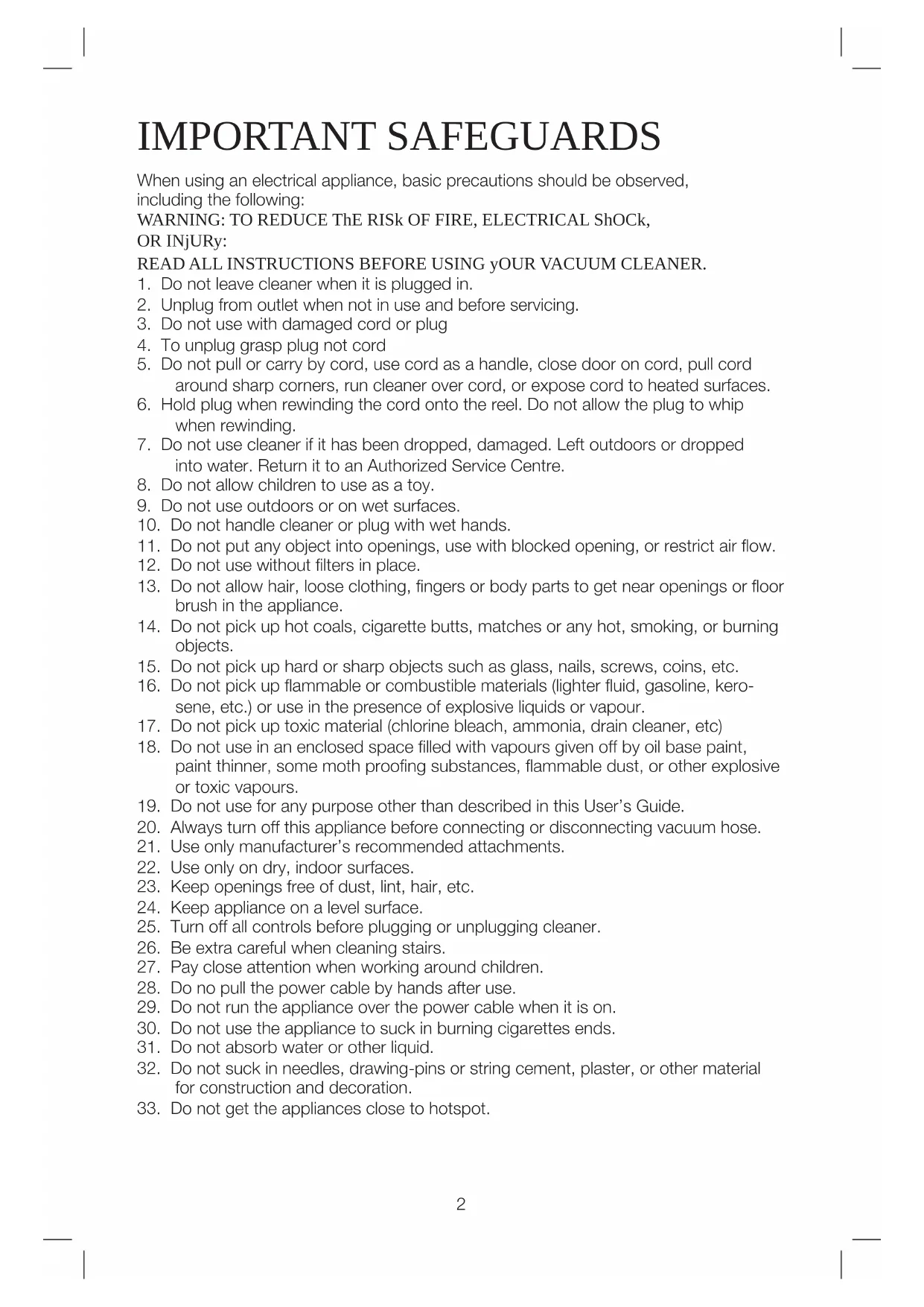 - Do not use cleaner if it has been dropped, damaged. Left outdoors or dropped into water. Return it to an Authorized Service Centre.