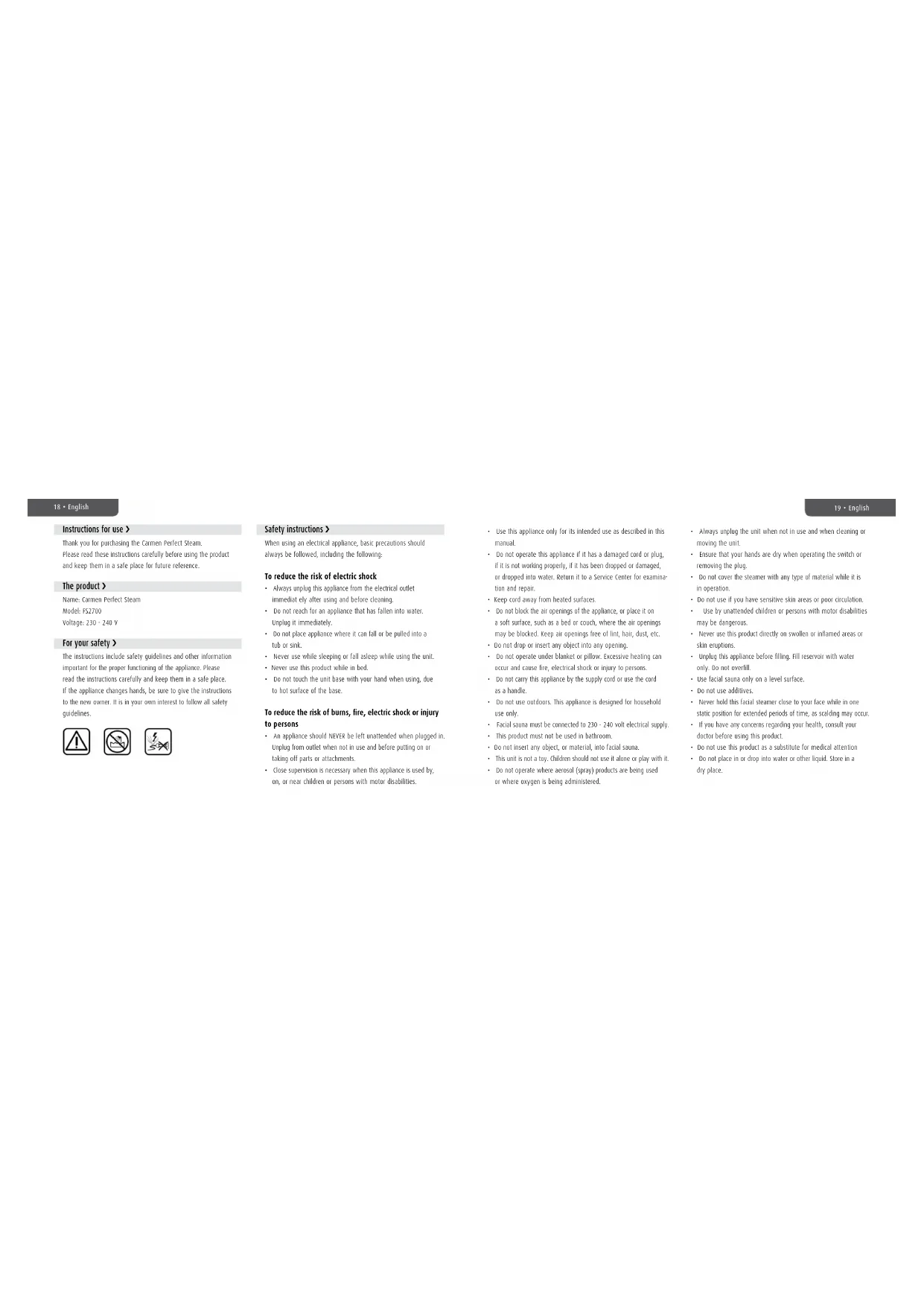 USER MANUAL Perfect Steam FS2700 Carmen