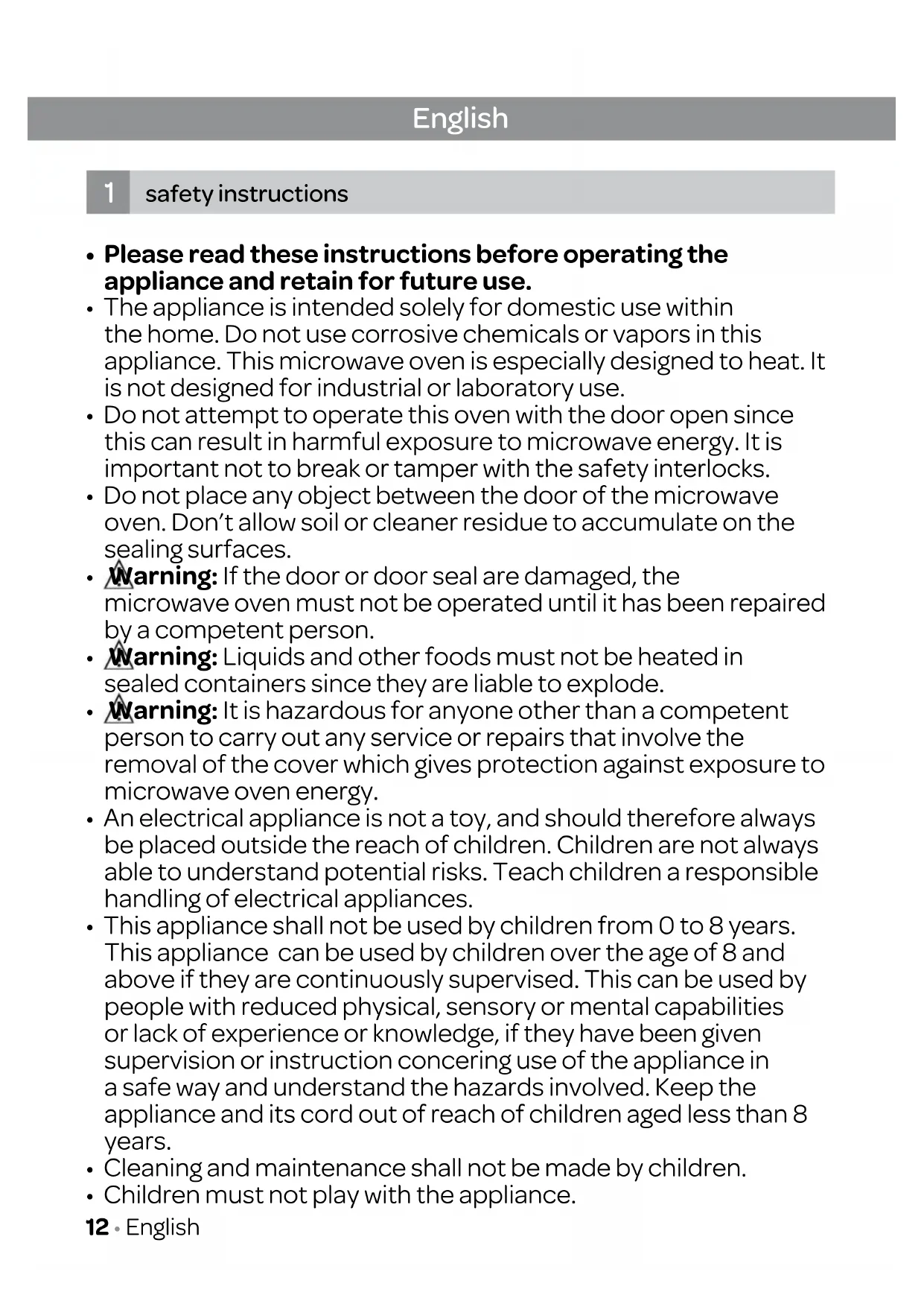 - This appliance shall not be used by children from 0 to 8 years. This appliance can be used by children over the age of 8 and above if they are continuously supervised. This can be used by people with reduced physical, sensory or mental capabilities or lack of experience or knowledge, if they have been given supervision or instruction concerning use of the appliance in a safe way and understand the hazards involved. Keep the appliance and its cord out of reach of children aged less than 8 years.