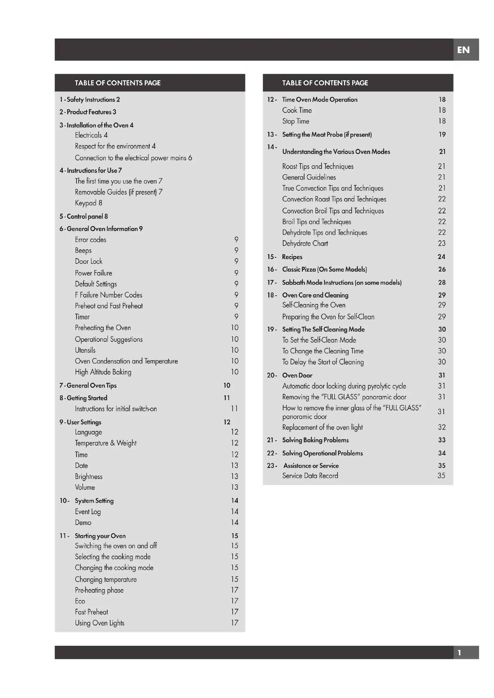 17 - Sabbath Mode Instructions (on some models) 28
