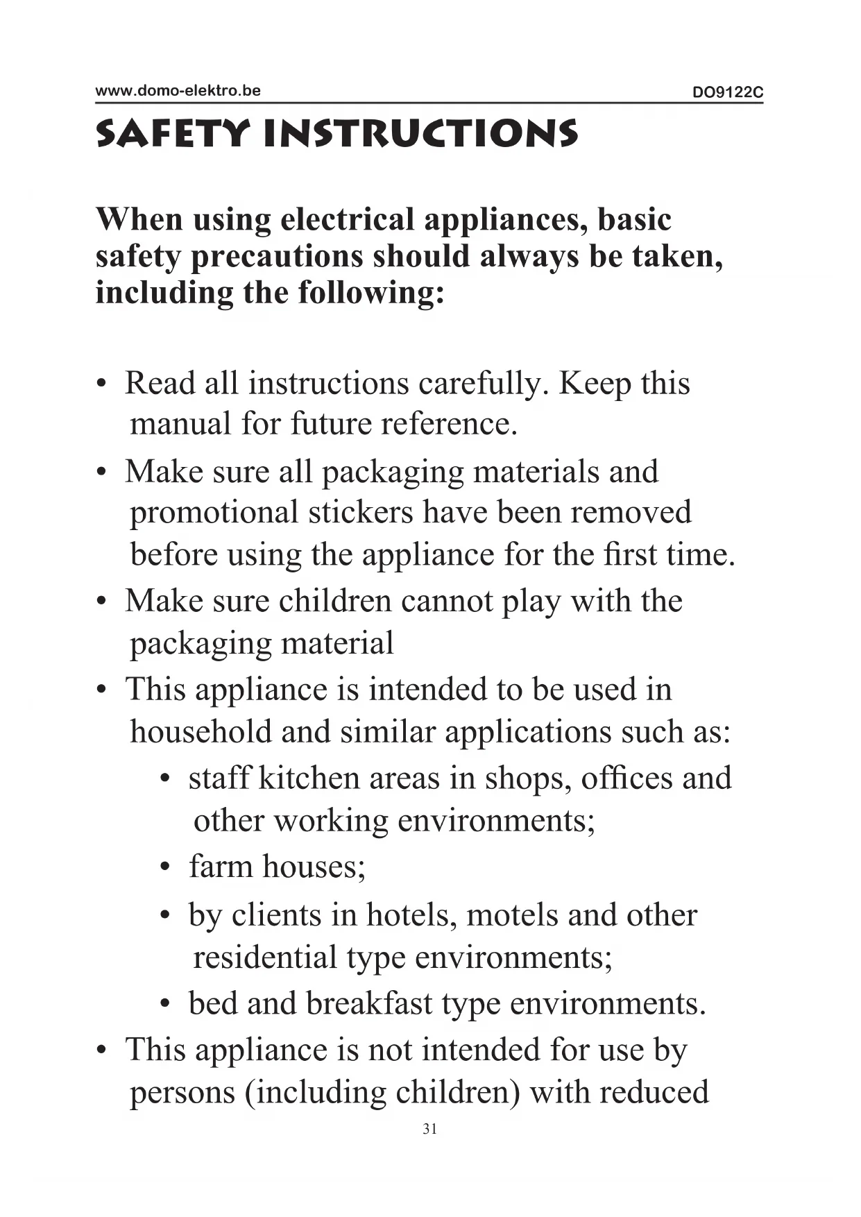 Download the instructions for your Sandwich maker in PDF format for free! Find your manual DO9122C - DOMO and take your electronic device back in hand. On this page are published all the documents necessary for the use of your device. DO9122C by DOMO.