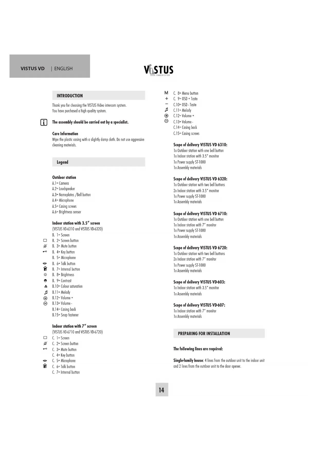 Thank you for choosing the VISTUS Video intercom system. You have purchased a high quality system.