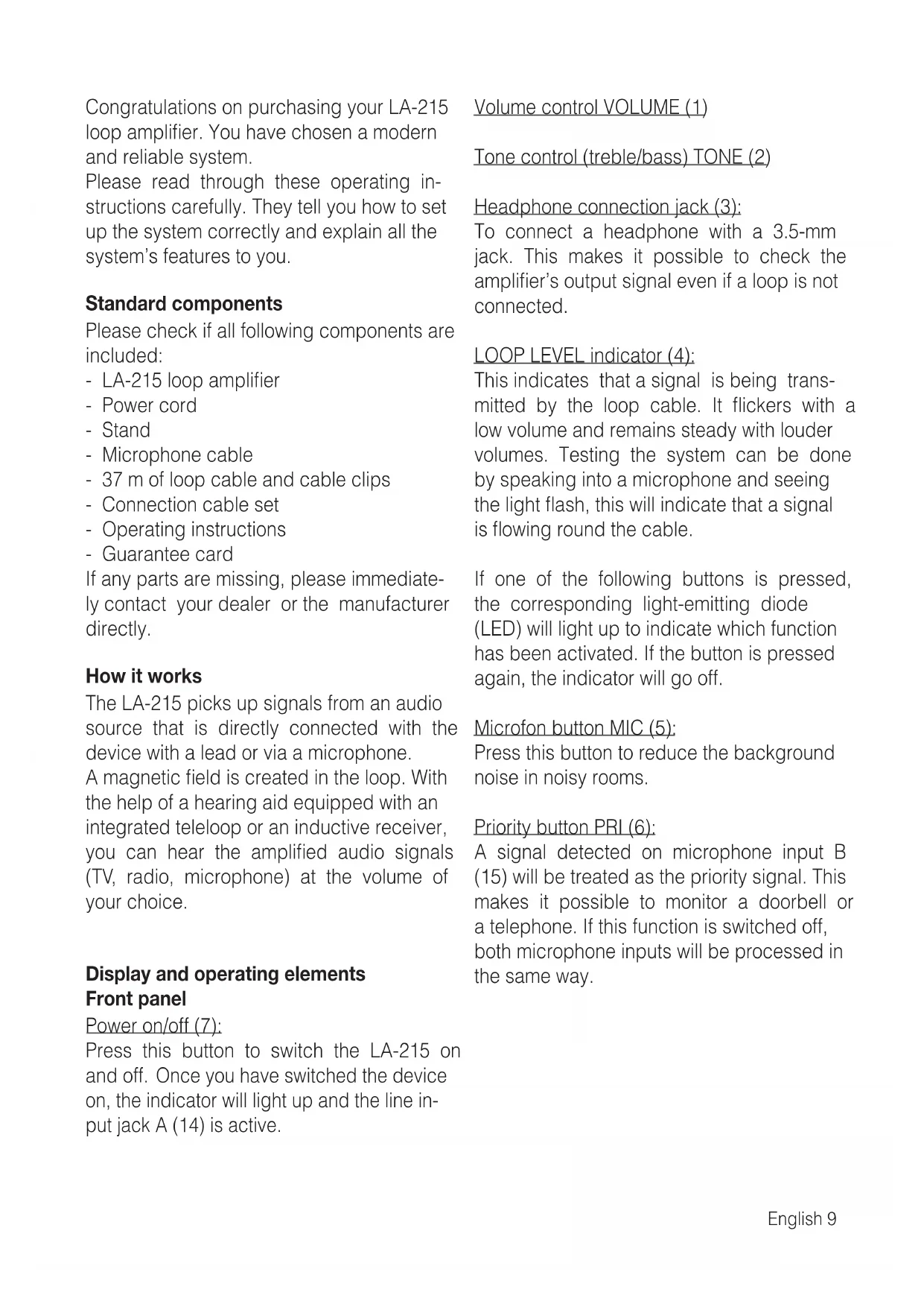 Stand for LA-215 ————Congratulations on purchasing your LA-215 loop amplifier. You have chosen a modern and reliable system.