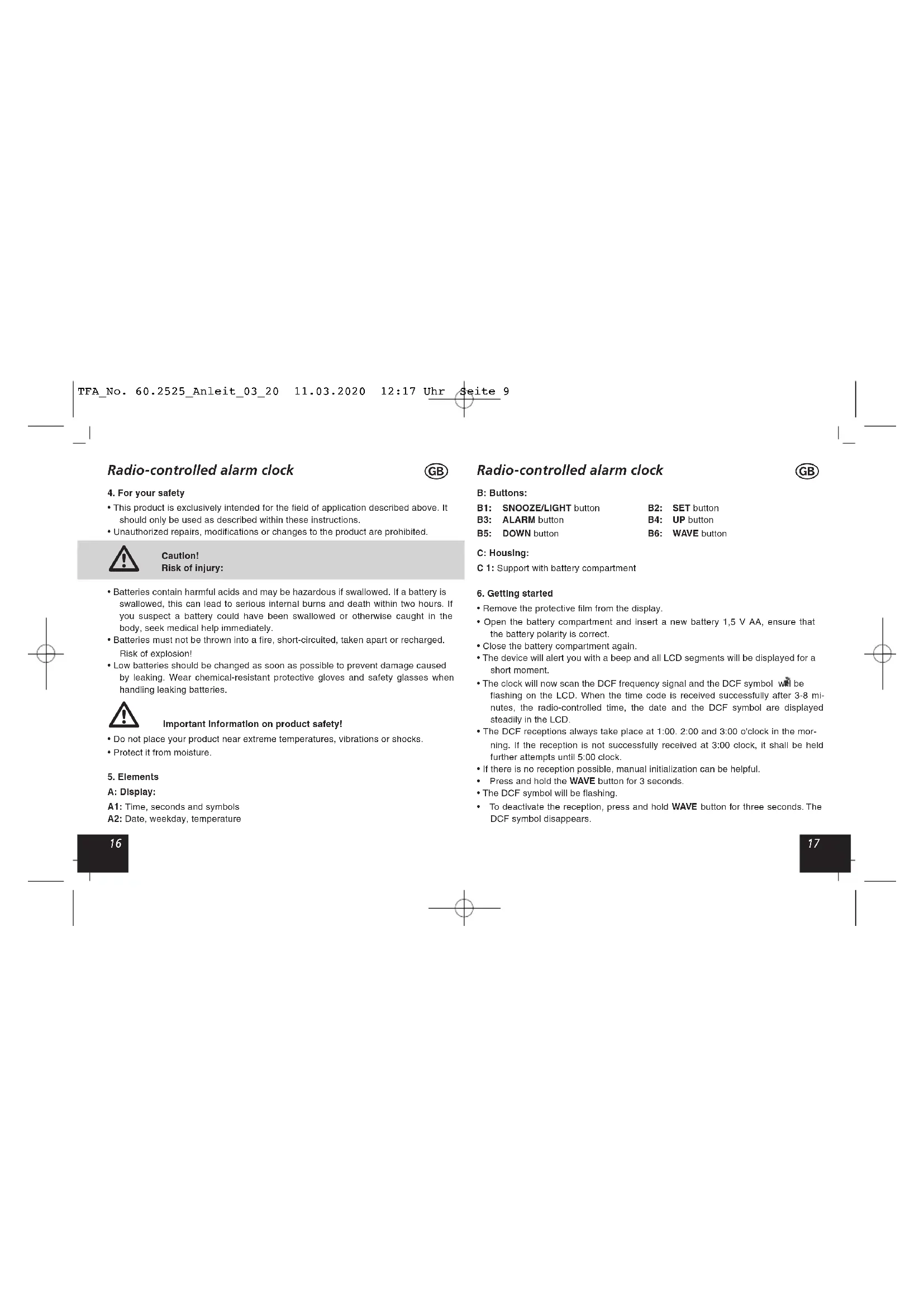 60.2525 - Alarm bell TFA - Free user manual and instructions