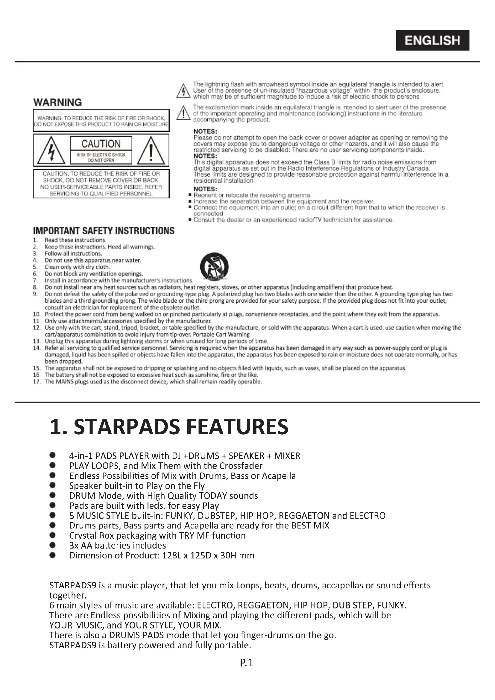 Star Pads 9 - Electronic musical instrument iDance - Free user manual and instructions