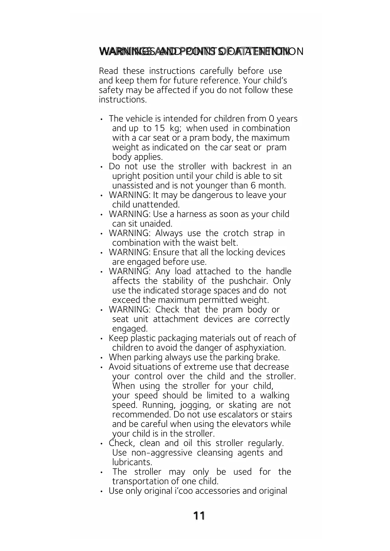 - Use only original i’coo accessories and original12 i’coo spare parts.