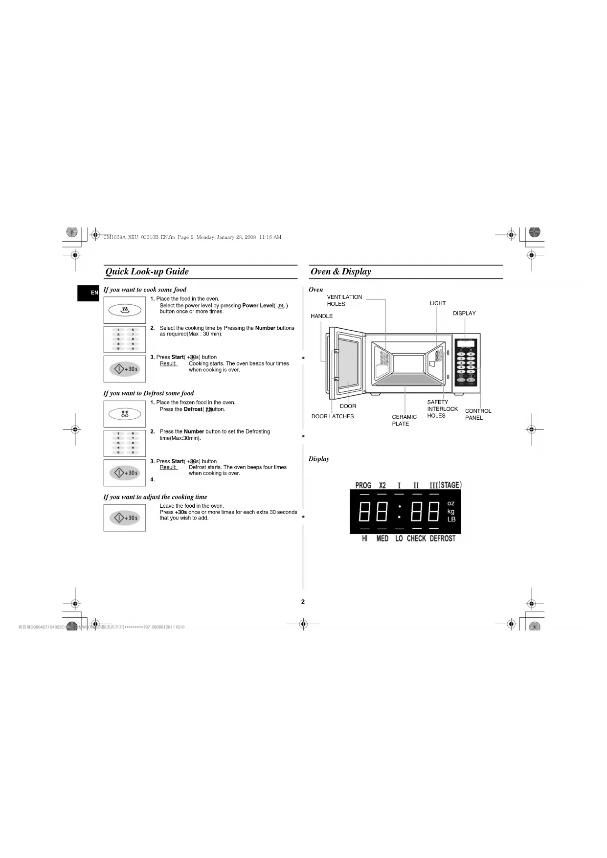 Quick Look-up Guide If you want to cook some food If you want to Defrost some food If you want to adjust the cooking time Oven & Display Oven Display
