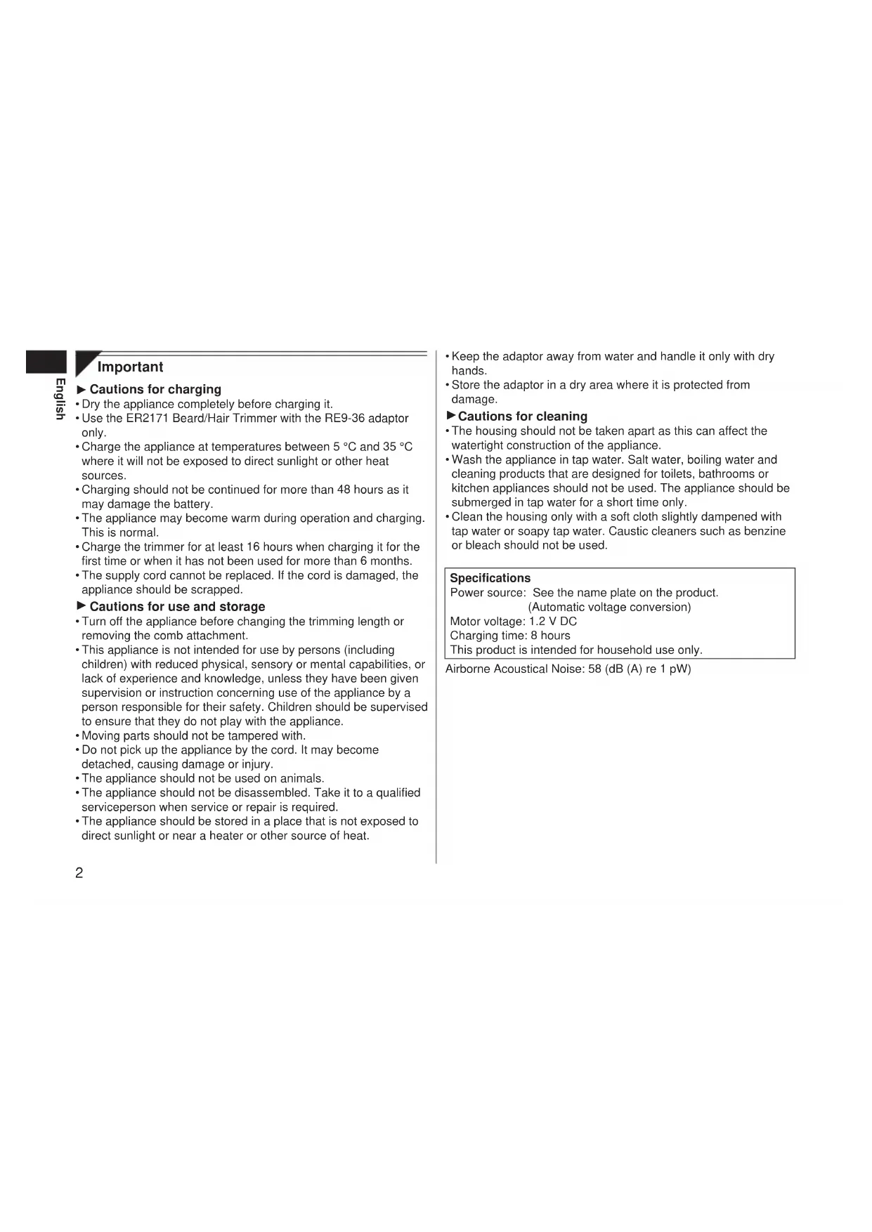 - Use the ER2171 Beard/Hair Trimmer with the RE9-36 adaptor only.