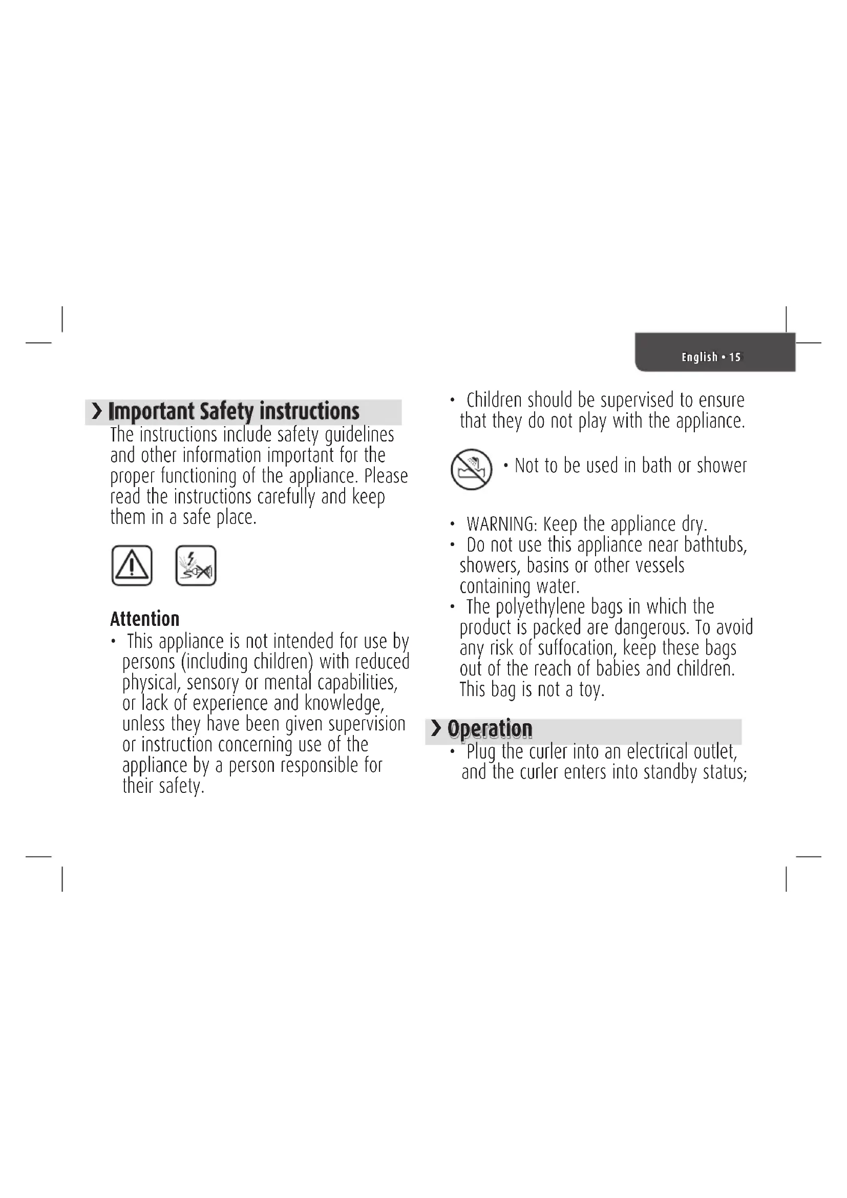 - This appliance is not intended for use by persons (including children) with reduced physical, sensory or mental capabilities, or lack of experience and knowledge, unless they have been given supervision or instruction concerning use of the appliance by a person responsible for their safety.