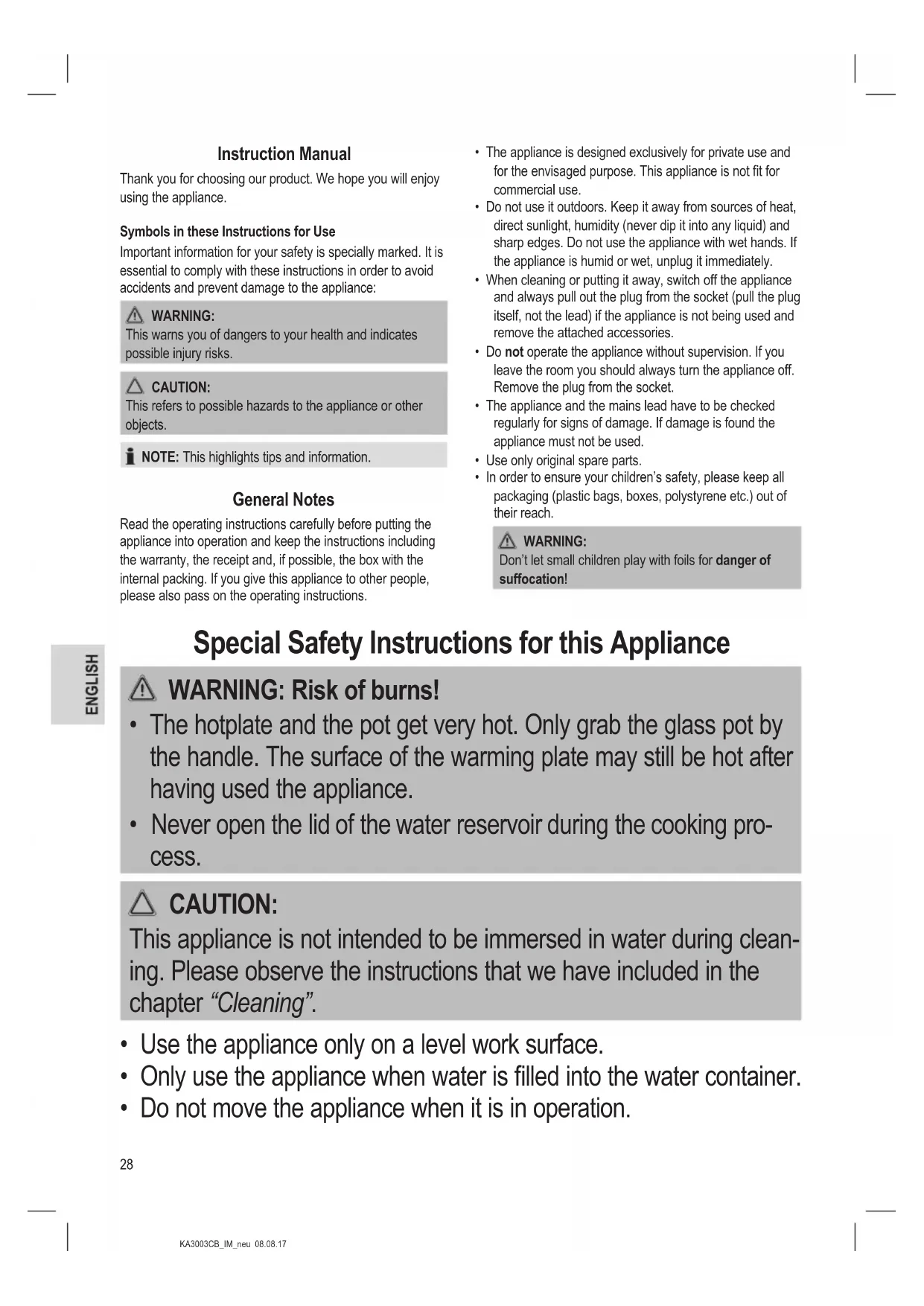 - Do not move the appliance when it is in operation.29 KA3003CB_IM_neu 08.08.17