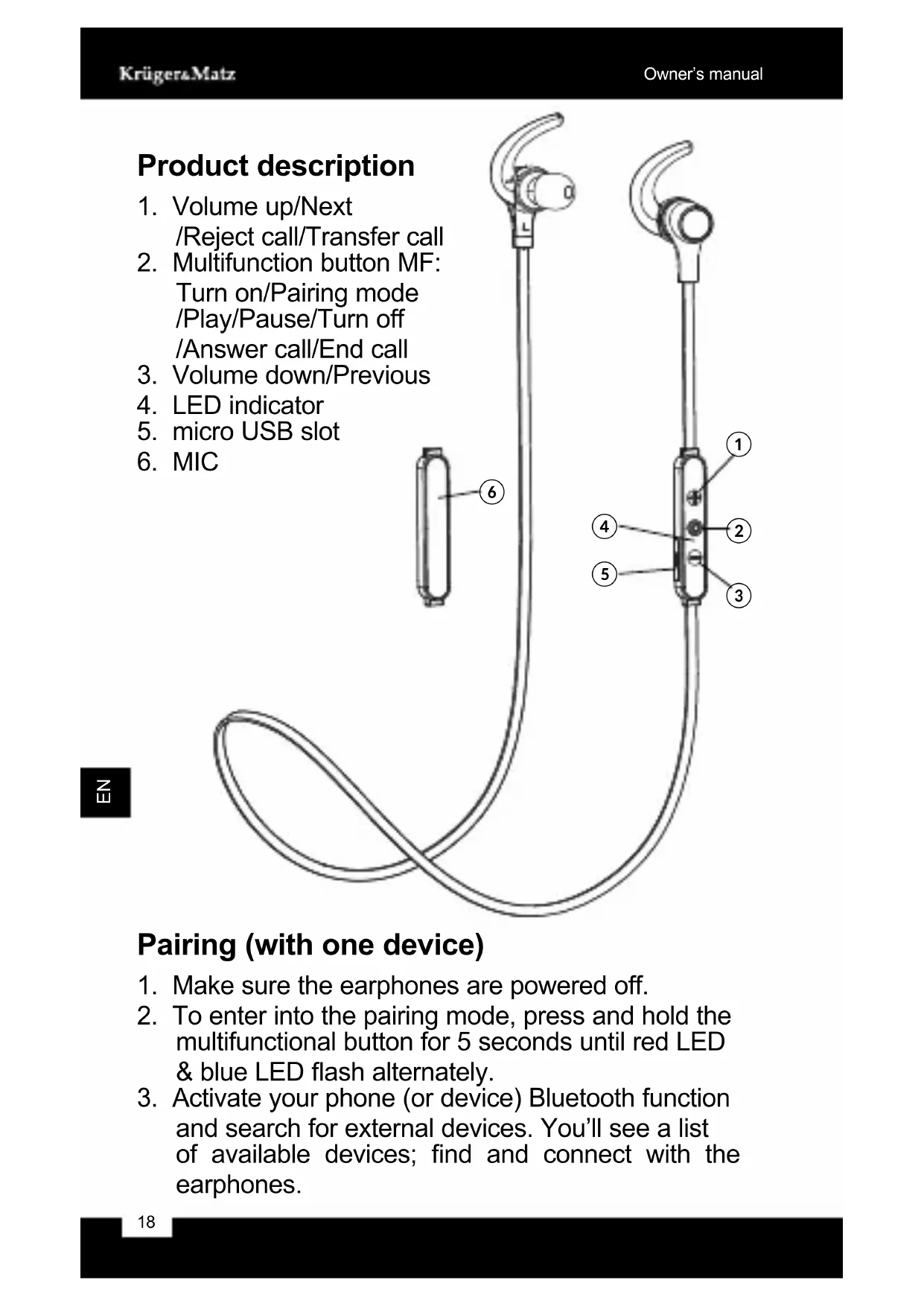 KMPM5G - Earphones Krüger&Matz - Free user manual and instructions