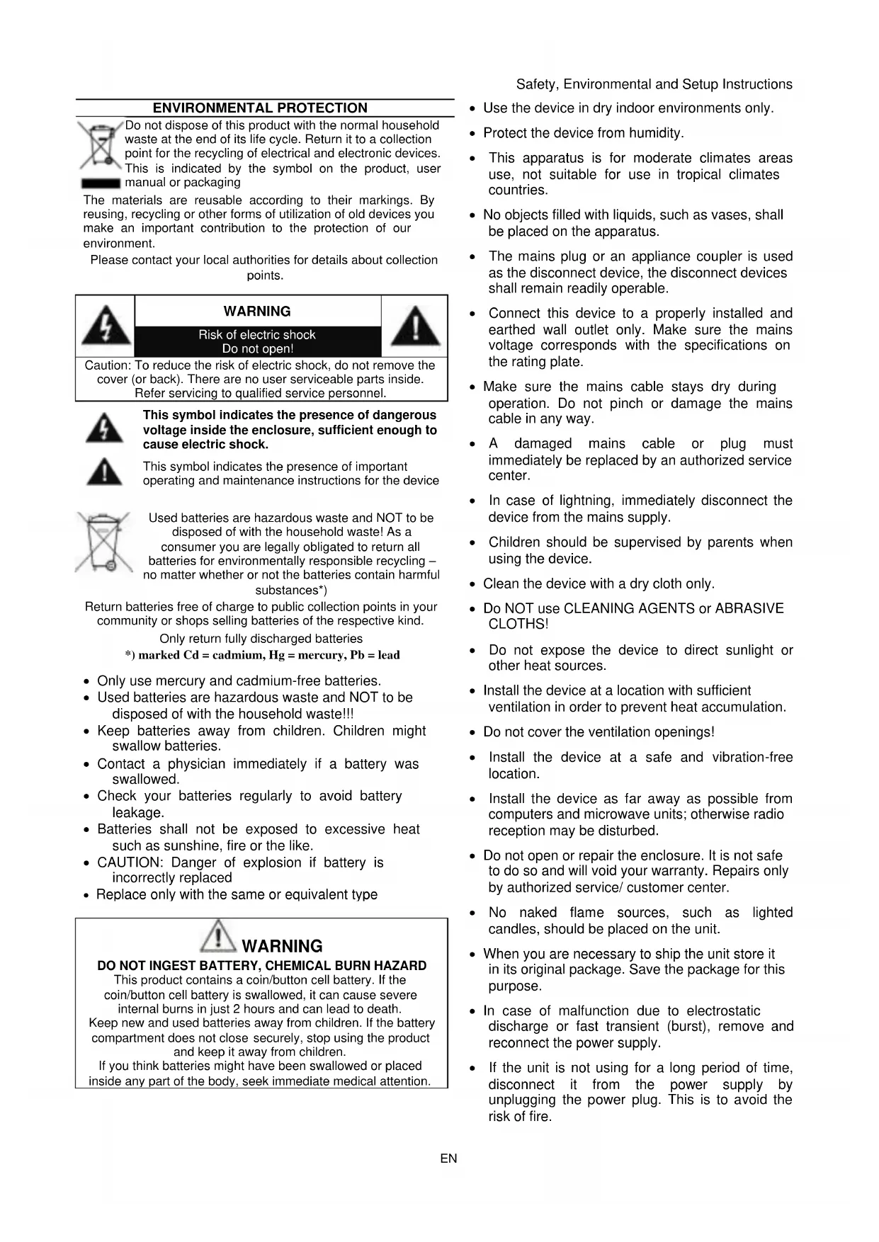 - Used batteries are hazardous waste and NOT to be disposed of with the household waste!!!