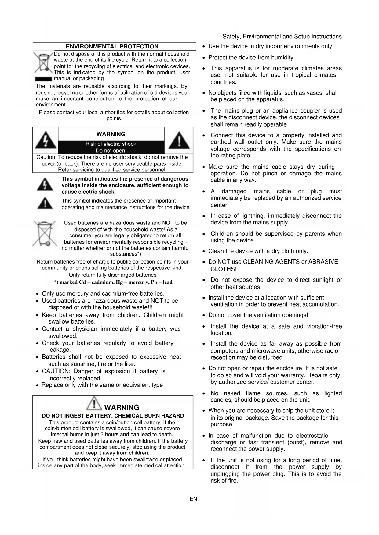 - Used batteries are hazardous waste and NOT to be disposed of with the household waste!!!