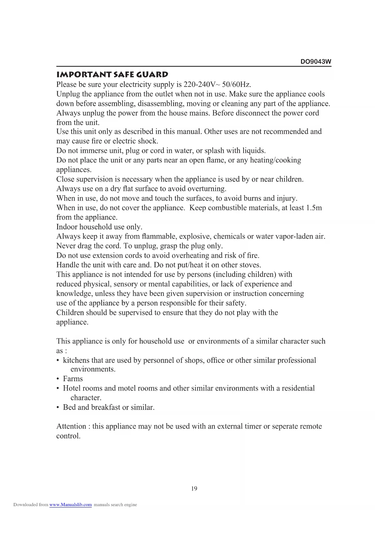 USER MANUAL DO9043W Pro DOMO