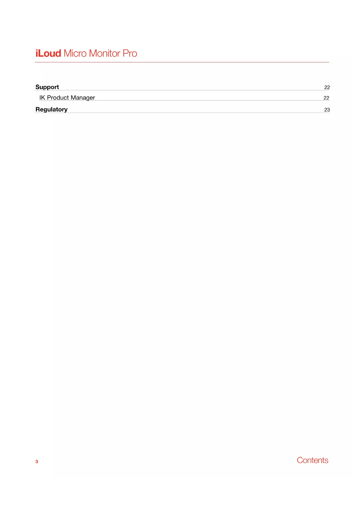 Support 22 IK Product Manager 22 Regulatory 23iLoud Micro Monitor Pro iLoud Micro Monitor Pro