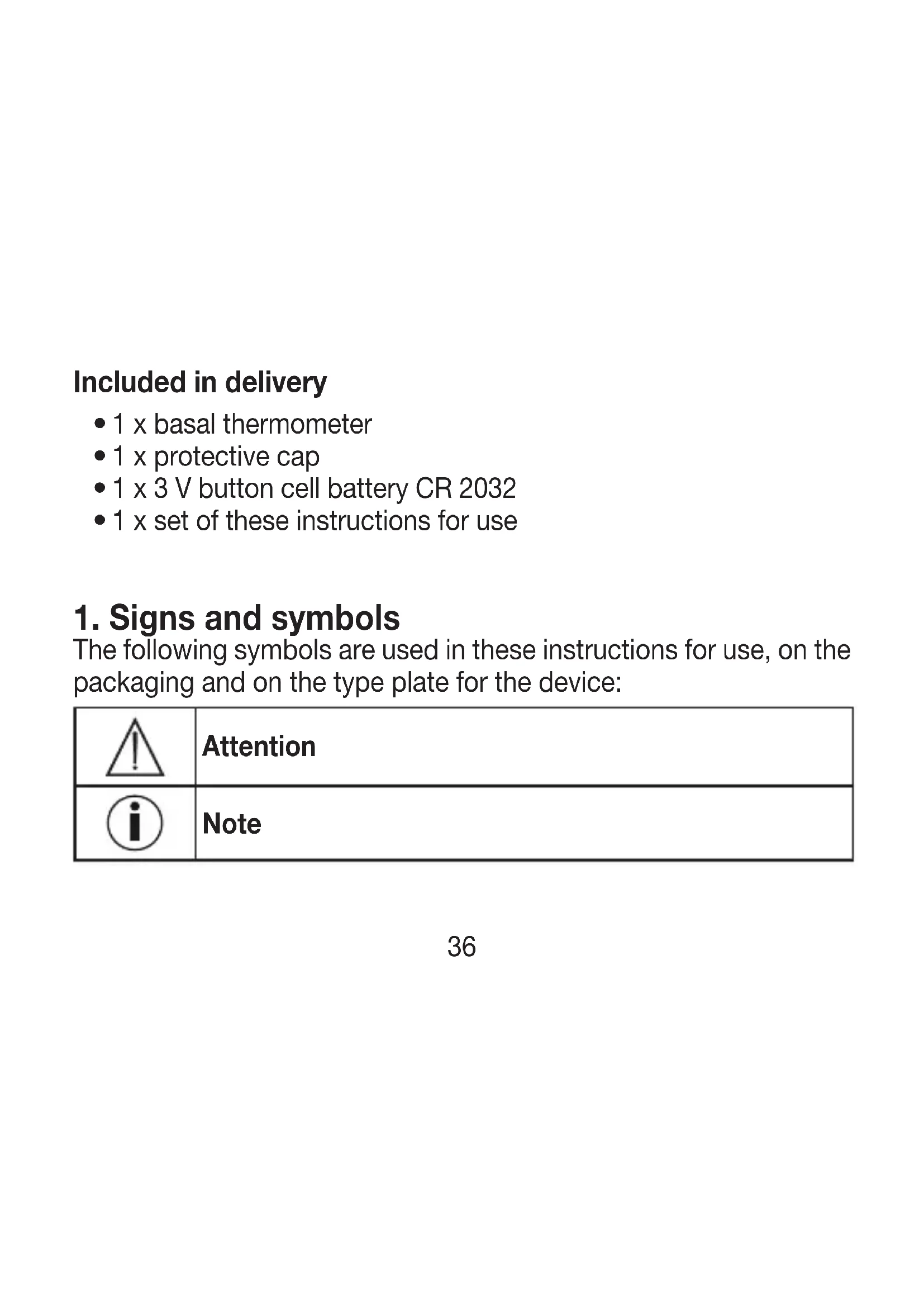 This device meets the requirements of the EU Directive 93/42/EEC concerning medical devices, as well as those of the Medizinpro- duktegesetz (German Medical Devices Act), the European Stand- ard EN 12470-3: Clinical thermometers – Part 3: Performance of compact electrical thermometers (non-predictive and predictive) with maximum device and the European Standard EN 60601-1-2 (in accordance with IEC 61000-4-2, IEC 61000-4-8), and is sub- ject to particular precautions with regard to electromagnetic com-43 patibility. The device is suitable for use in all environments listed in these instructions for use, including domestic environments. Please note that portable and mobile HF communication systems may interfere with this device. Notes on handling batteries
